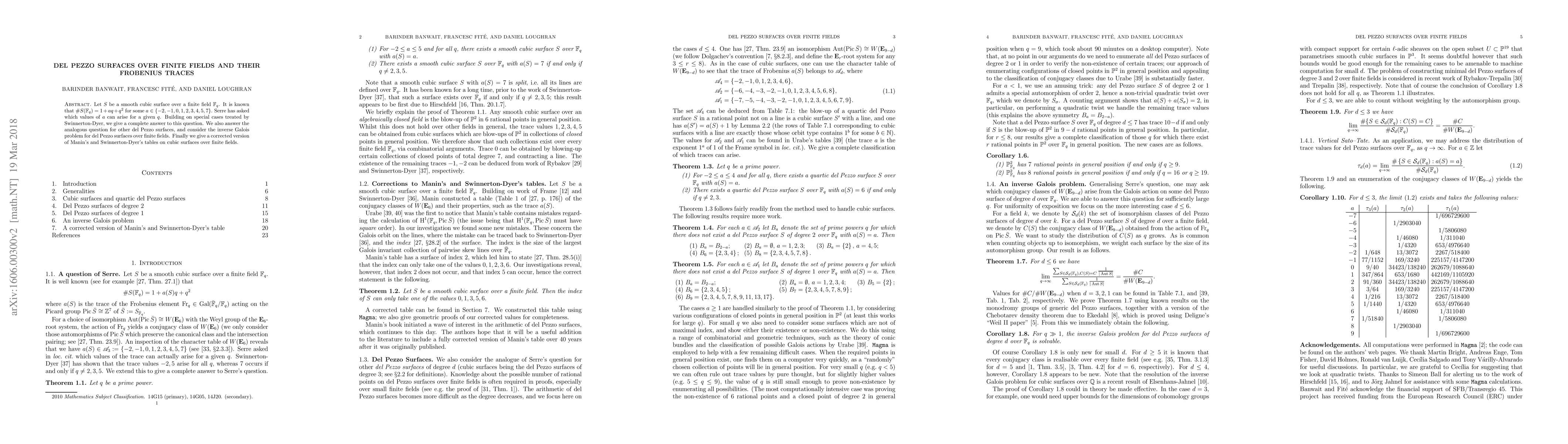 This paper provides a complete answer to Serre's question on possible values of $a$ for smooth cubic surfaces over finite fields $\mathbb{F}_q$, extending results for other del Pezzo surfaces. It also addresses the inverse Galois problem for these surfaces and corrects earlier tables on cubic surfaces.