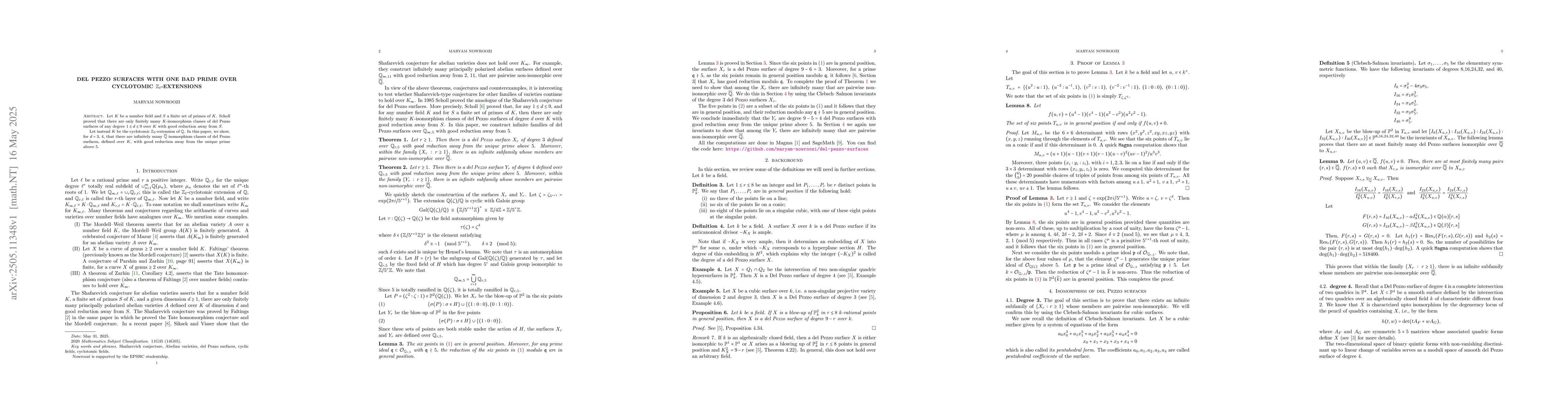 The findings contribute to understanding arithmetic geometry of del Pezzo surfaces over specific infinite extensions of $\mathbb{Q}$, potentially impacting the study of bad reduction in such contexts.