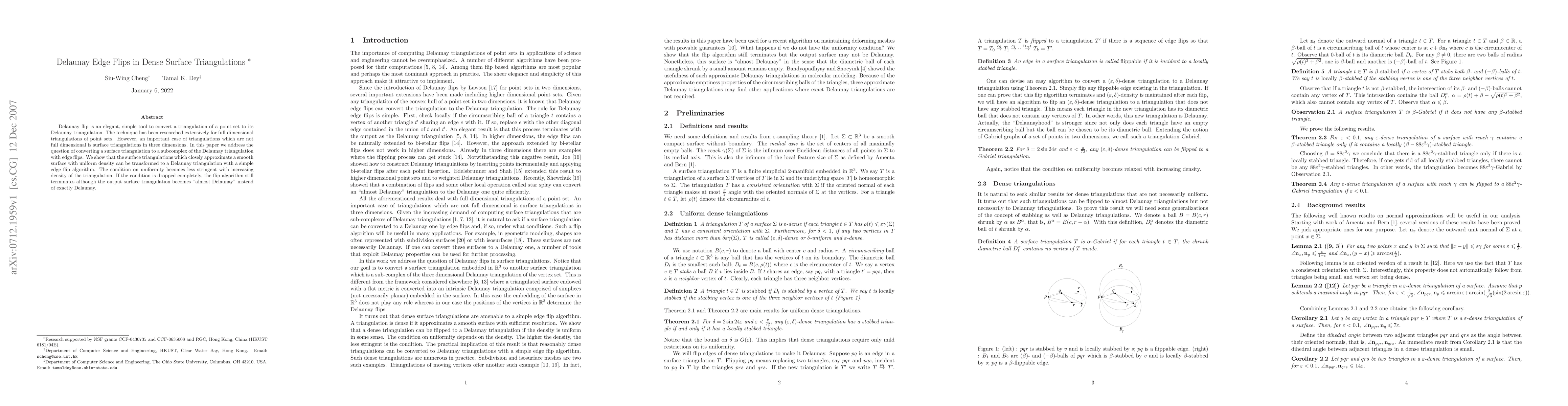 This paper proposes an edge flip algorithm to convert dense surface triangulations into subcomplexes of the Delaunay triangulation, emphasizing that uniform density simplifies the transformation process. Even without strict uniformity, the algorithm still produces an "almost Delaunay" surface triangulation.