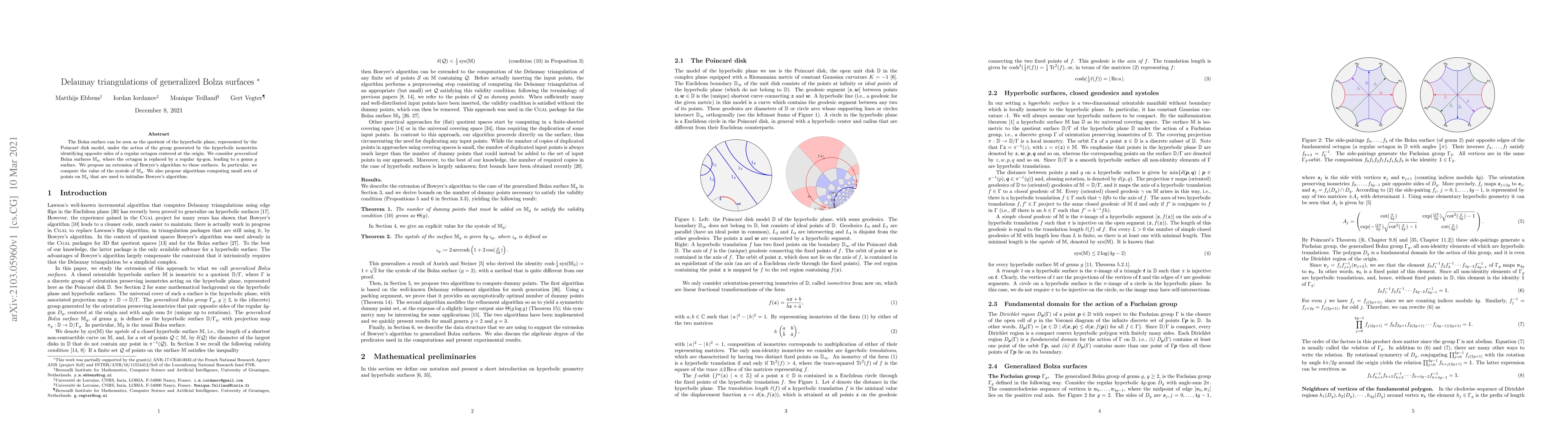 Researchers propose an extension of Bowyer's algorithm to compute the systole of generalized Bolza surfaces, which generalize the hyperbolic plane and allow for varying polygon centers, enabling efficient triangulations.
