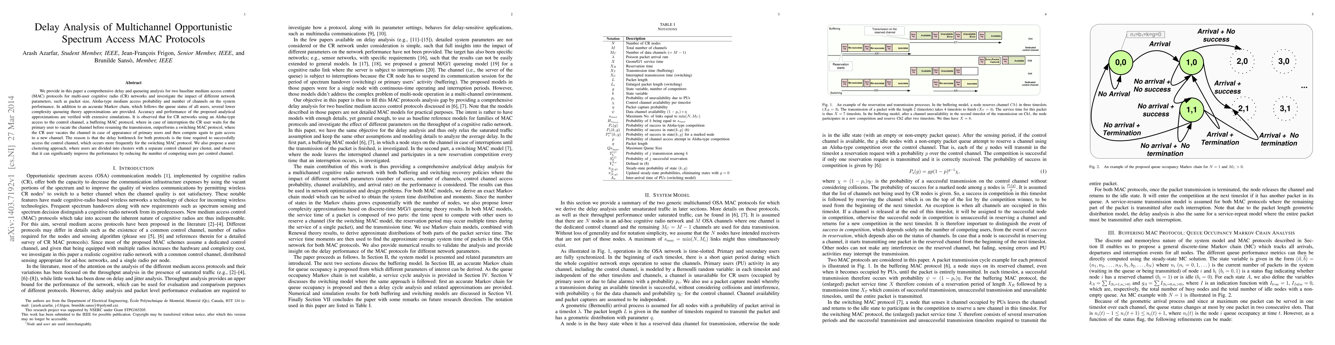 This paper conducts a delay and queueing analysis of two MAC protocols for multi-user cognitive radio networks, finding that a buffering protocol outperforms a switching protocol due to reduced control channel access delays. Additionally, user clustering with separate control channels per cluster significantly enhances performance by minimizing competition.