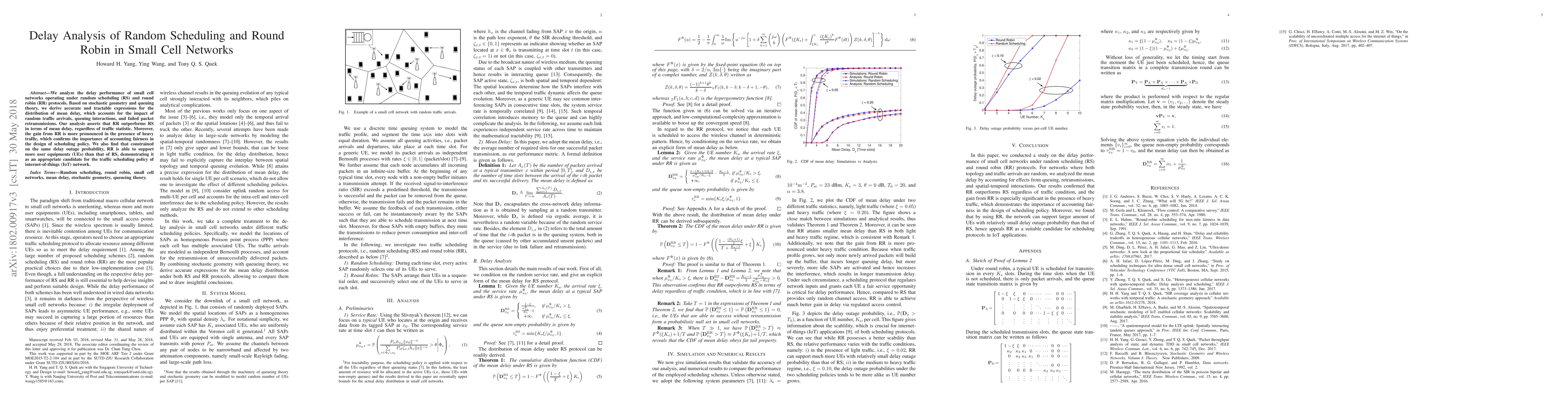 Random scheduling (RS) is outperformed by round robin (RR) in terms of mean delay, especially under heavy traffic conditions. RR supports more user equipments at the same outage probability as RS.