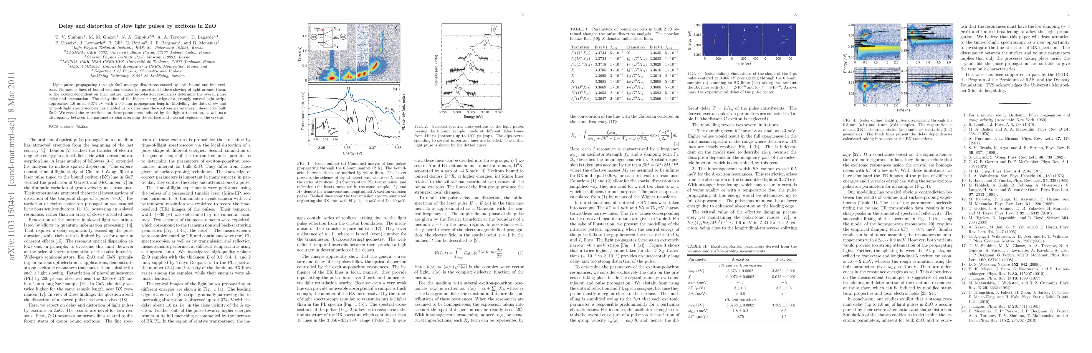 Light pulses propagating through ZnO undergo distortions caused by both bound and free excitons. Numerous lines of bound excitons dissect the pulse and induce slowing of light around them, to the extend dependent on their nature. Exciton-polariton resonances determine the overall pulse delay and attenuation. The delay time of the higher-energy edge of a strongly curved light stripe approaches 1.6 ns at 3.374 eV with a 0.3 mm propagation length. Modelling the data of cw and time-of-flight spectroscopies has enabled us to determine the excitonic parameters, inherent for bulk ZnO. We reveal the restrictions on these parameters induced by the light attenuation, as well as a discrepancy between the parameters characterizing the surface and internal regions of the crystal.