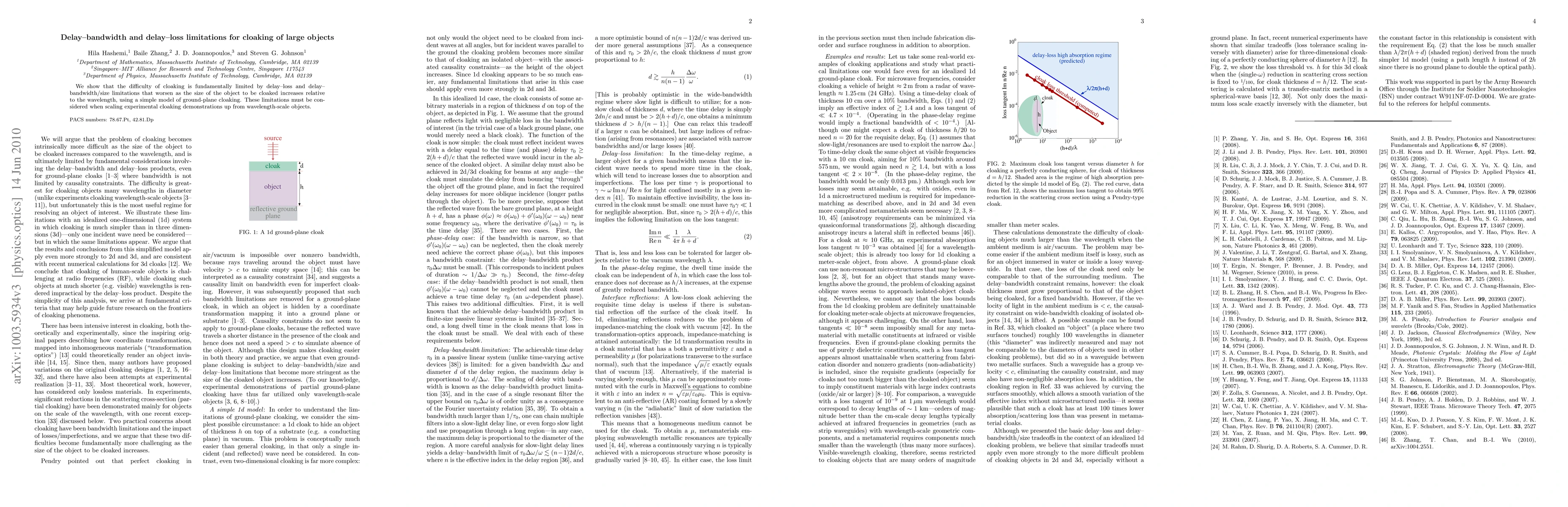 This paper discusses the fundamental limitations of cloaking large objects due to delay-loss and delay-bandwidth/size constraints, which worsen as object size increases relative to the wavelength. These factors pose significant material and loss challenges for scaling cloaking technology to human-scale objects.