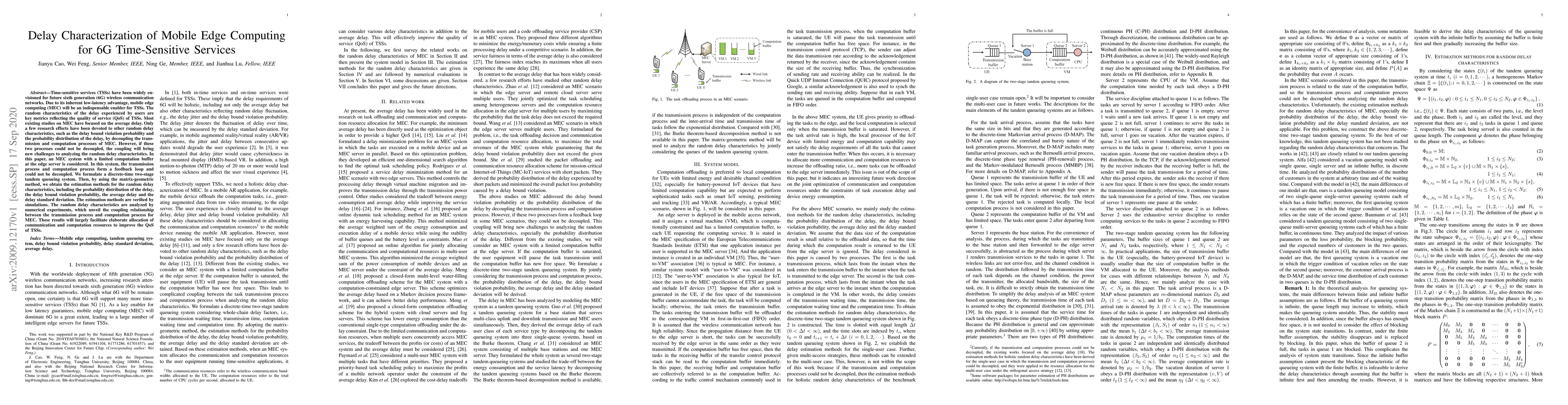 Time-sensitive services (TSSs) have been widely envisioned for future sixth generation (6G) wireless communication networks. Due to its inherent low-latency advantage, mobile edge computing (MEC) will be an indispensable enabler for TSSs. The random characteristics of the delay experienced by users are key metrics reflecting the quality of service (QoS) of TSSs. Most existing studies on MEC have focused on the average delay. Only a few research efforts have been devoted to other random delay characteristics, such as the delay bound violation probability and the probability distribution of the delay, by decoupling the transmission and computation processes of MEC. However, if these two processes could not be decoupled, the coupling will bring new challenges to analyzing the random delay characteristics. In this paper, an MEC system with a limited computation buffer at the edge server is considered. In this system, the transmission process and computation process form a feedback loop and could not be decoupled. We formulate a discrete-time two-stage tandem queueing system. Then, by using the matrix-geometric method, we obtain the estimation methods for the random delay characteristics, including the probability distribution of the delay, the delay bound violation probability, the average delay and the delay standard deviation. The estimation methods are verified by simulations. The random delay characteristics are analyzed by numerical experiments, which unveil the coupling relationship between the transmission process and computation process for MEC. These results will largely facilitate elaborate allocation of communication and computation resources to improve the QoS of TSSs.