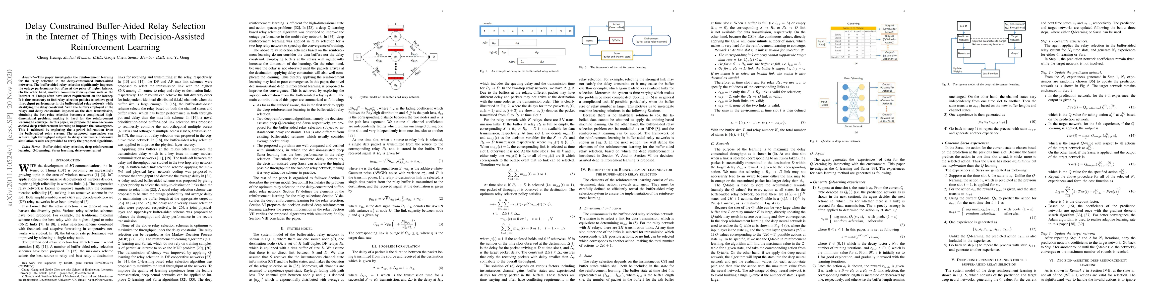 This paper proposes a decision-assisted deep reinforcement learning approach for relay selection in delay-constrained buffer-aided networks, aiming to balance throughput and latency in Internet of Things systems. The method leverages a-priori information to improve convergence and achieve high throughput while adhering to delay constraints, as demonstrated by extensive simulations.