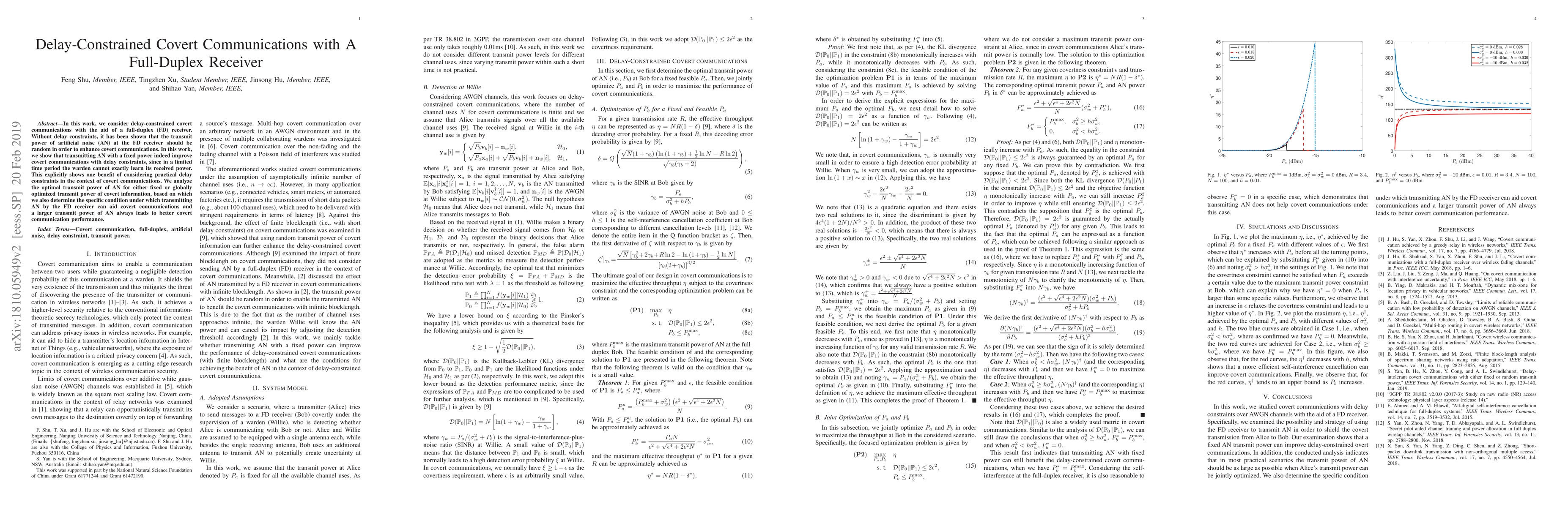 This paper investigates delay-constrained covert communications using a full-duplex receiver, demonstrating that fixed-power artificial noise (AN) can enhance covert performance under time constraints, as the warden cannot precisely detect the AN power. It analyzes the optimal AN transmit power and concludes that a larger AN transmit power generally improves covert communication effectiveness.