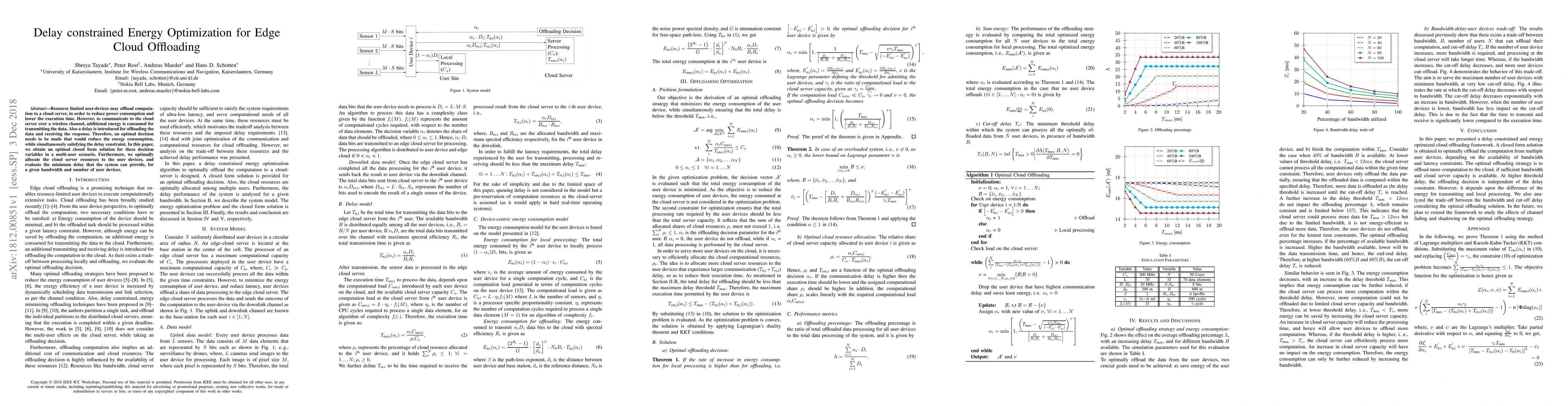 Resource limited user-devices may offload computation to a cloud server, in order to reduce power consumption and lower the execution time. However, to communicate to the cloud server over a wireless channel, additional energy is consumed for transmitting the data. Also a delay is introduced for offloading the data and receiving the response. Therefore, an optimal decision needs to be made that would reduce the energy consumption, while simultaneously satisfying the delay constraint. In this paper, we obtain an optimal closed form solution for these decision variables in a multi-user scenario. Furthermore, we optimally allocate the cloud server resources to the user devices, and evaluate the minimum delay that the system can provide, for a given bandwidth and number of user devices.