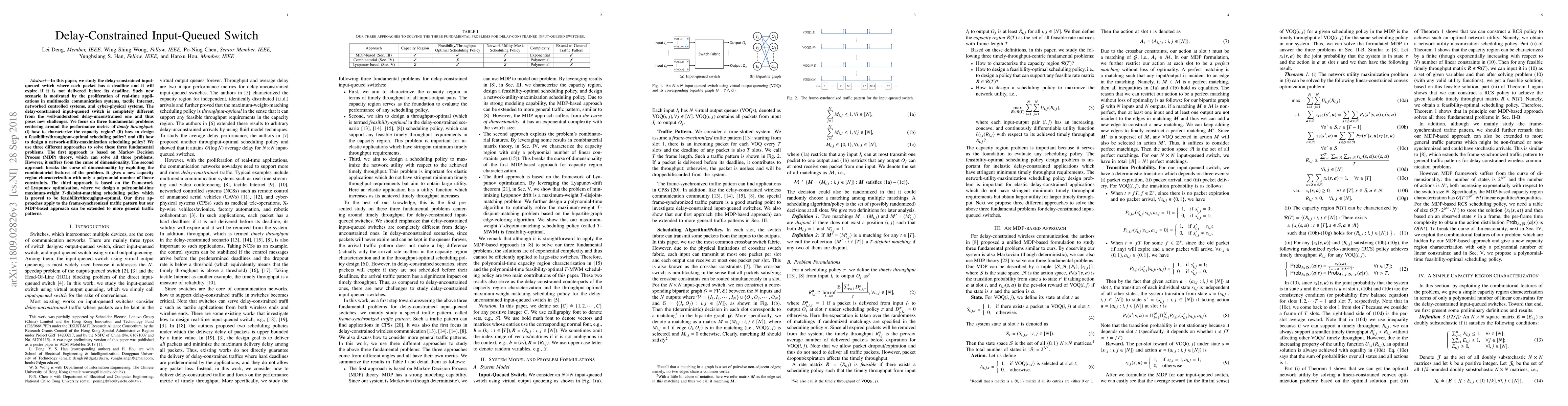 This paper investigates the delay-constrained input-queued switch, addressing the challenge of packet delivery before deadlines in real-time applications. It proposes three approaches to characterize capacity, design optimal scheduling policies, and maximize network utility, with the second approach overcoming the curse of dimensionality and the third leveraging Lyapunov optimization.