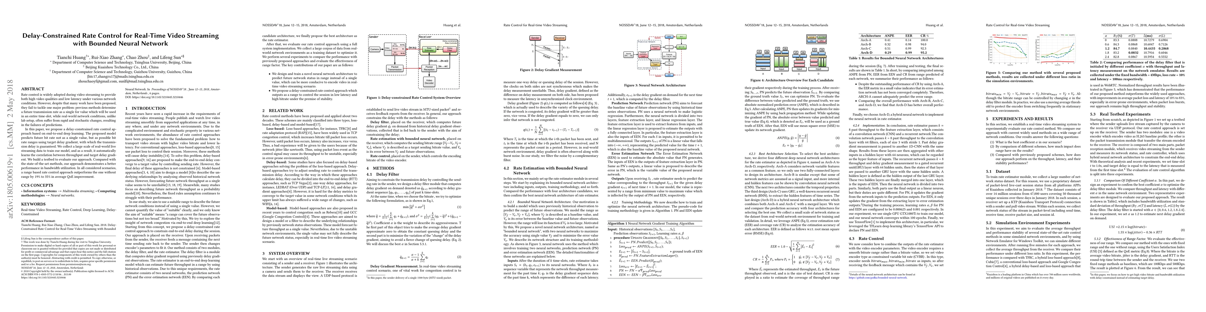 The proposed delay-constrained rate control approach uses end-to-end deep learning to predict a future throughput range, taking into account both previous network status and required delay.