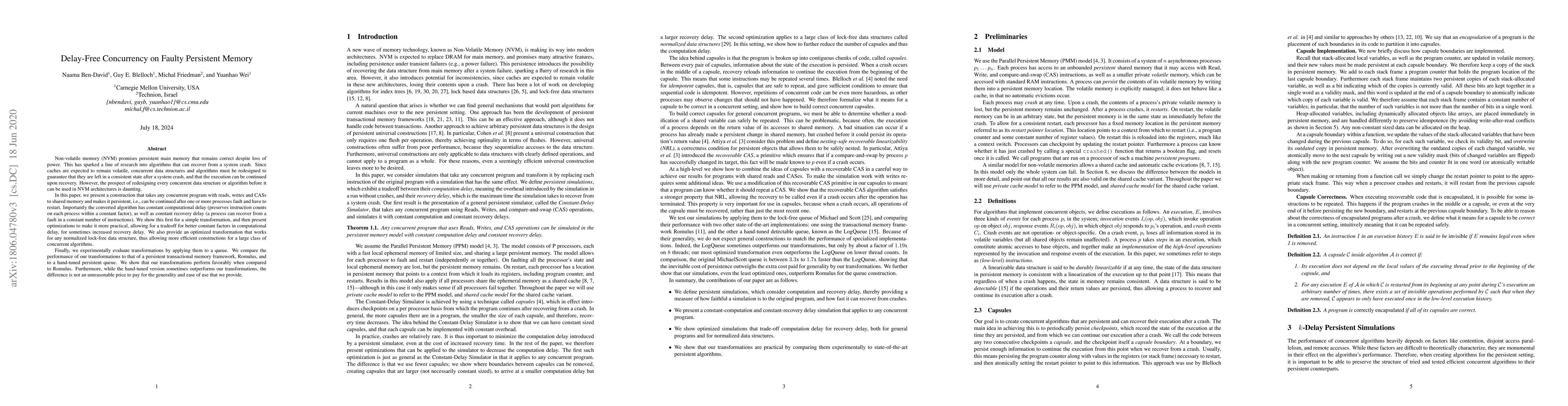 Non-volatile memory (NVM) promises persistent main memory that remains correct despite loss of power. This has sparked a line of research into algorithms that can recover from a system crash. Since caches are expected to remain volatile, concurrent data structures and algorithms must be redesigned to guarantee that they are left in a consistent state after a system crash, and that the execution can be continued upon recovery. However, the prospect of redesigning every concurrent data structure or algorithm before it can be used in NVM architectures is daunting. In this paper, we present a construction that takes any concurrent program with reads, writes and CASs to shared memory and makes it persistent, i.e., can be continued after one or more processes fault and have to restart. Importantly the converted algorithm has constant computational delay (preserves instruction counts on each process within a constant factor), as well as constant recovery delay (a process can recover from a fault in a constant number of instructions). We show this first for a simple transformation, and then present optimizations to make it more practical, allowing for a tradeoff for better constant factors in computational delay, for sometimes increased recovery delay. We also provide an optimized transformation that works for any normalized lock-free data structure, thus allowing more efficient constructions for a large class of concurrent algorithms. We experimentally evaluate our transformations by applying them to a queue.
