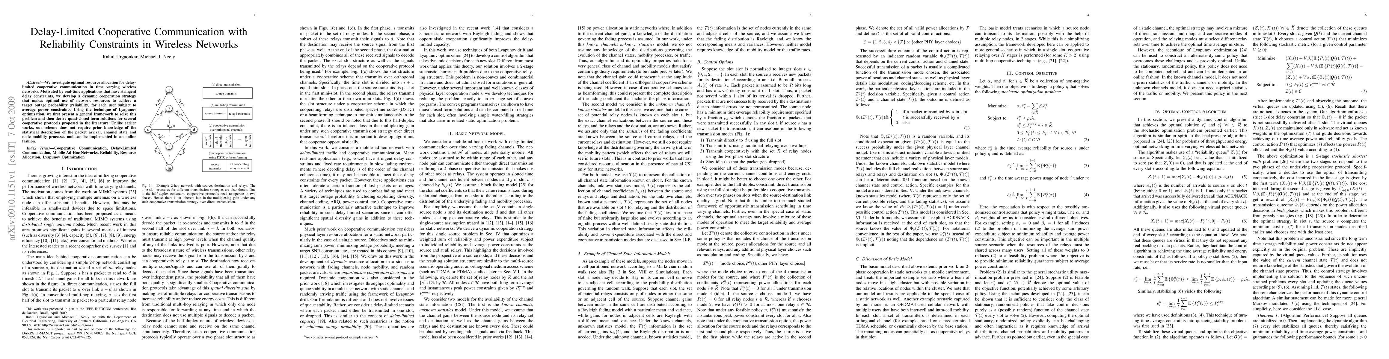 This paper develops a dynamic cooperation strategy for delay-limited communication in wireless networks, optimizing resource allocation to meet target outage probabilities under average power constraints. It employs Lyapunov optimization to provide quasi-closed form solutions for various cooperative protocols, enabling online implementation without prior knowledge of network dynamics.