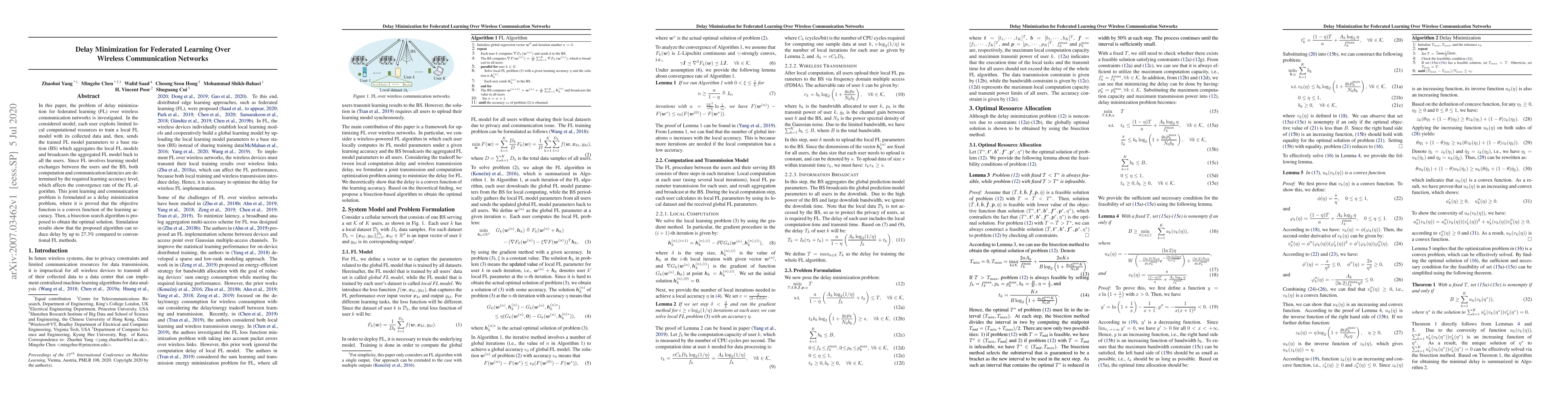 This paper investigates delay minimization for federated learning over wireless networks, formulating it as a convex optimization problem. A bisection search algorithm is proposed to find the optimal learning accuracy, achieving up to 27.3% delay reduction compared to conventional methods.
