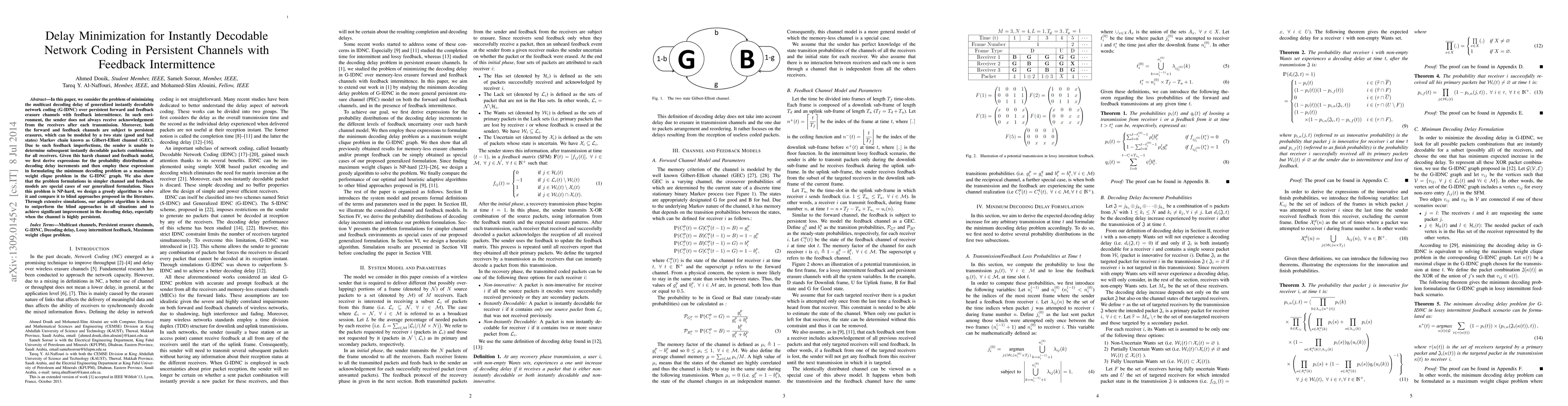 This paper addresses minimizing multicast decoding delay in generalized instantly decodable network coding over persistent erasure channels with intermittent feedback. The authors propose a greedy algorithm to solve the NP-hard problem, demonstrating significant delay reduction compared to blind approaches through simulations.