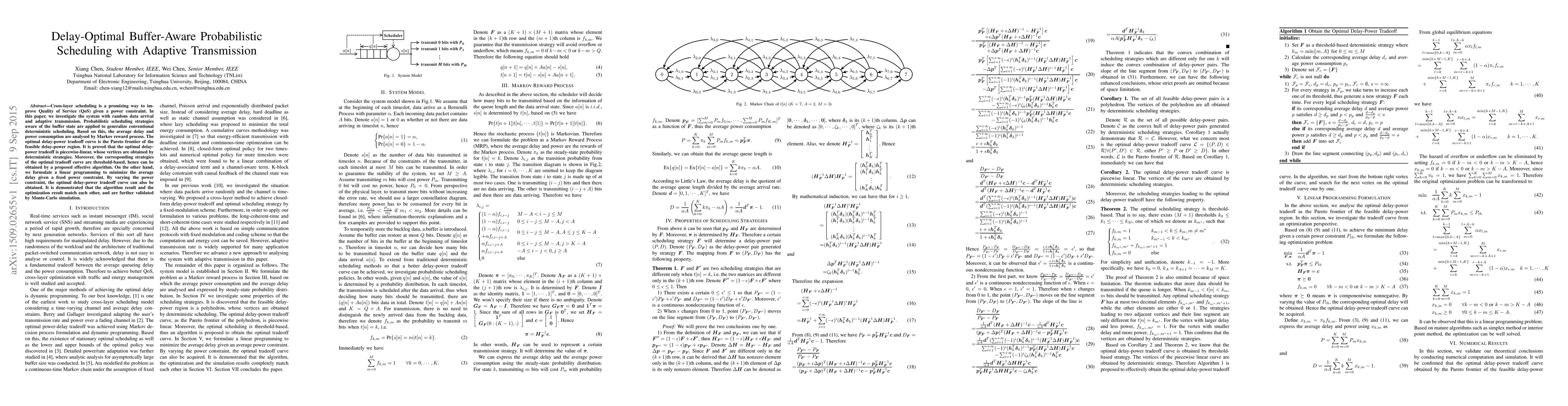 Researchers developed an optimal buffer-aware scheduling strategy that balances delay and power consumption in wireless networks, achieving a piecewise-linear tradeoff curve with threshold-based deterministic strategies. The results show a match between the algorithm's output and optimization results, demonstrating the effectiveness of the approach.