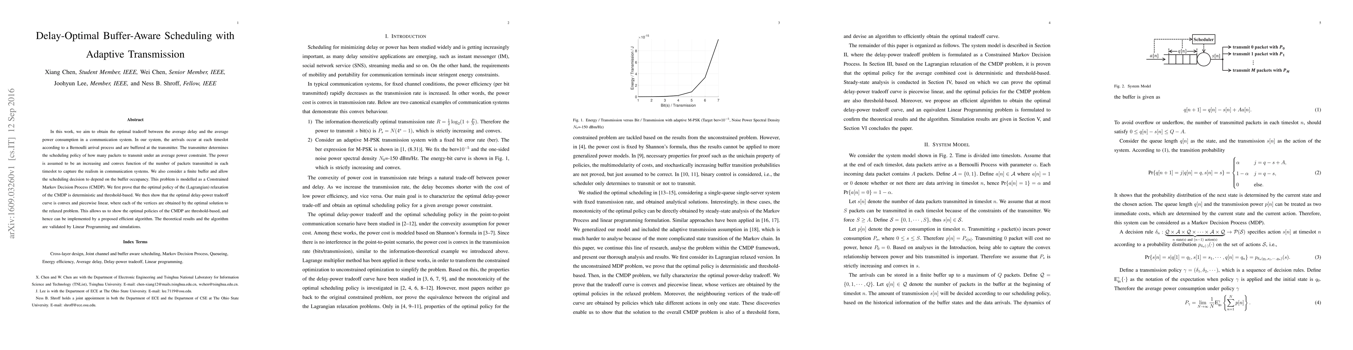This research paper develops an algorithm for optimizing delay-power tradeoff in communication systems with buffer-aware scheduling, showing that the optimal policy is threshold-based and can be efficiently implemented.