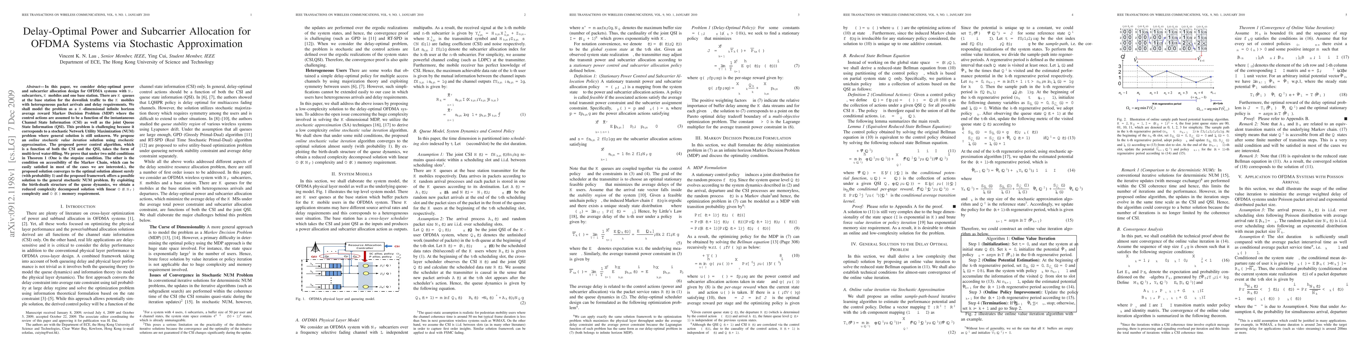 This paper proposes an online stochastic value iteration method using stochastic approximation for delay-optimal power and subcarrier allocation in OFDMA systems. The solution converges to the optimal solution almost surely under mild conditions, offering a reduced complexity decomposed solution with linear complexity and memory requirements.