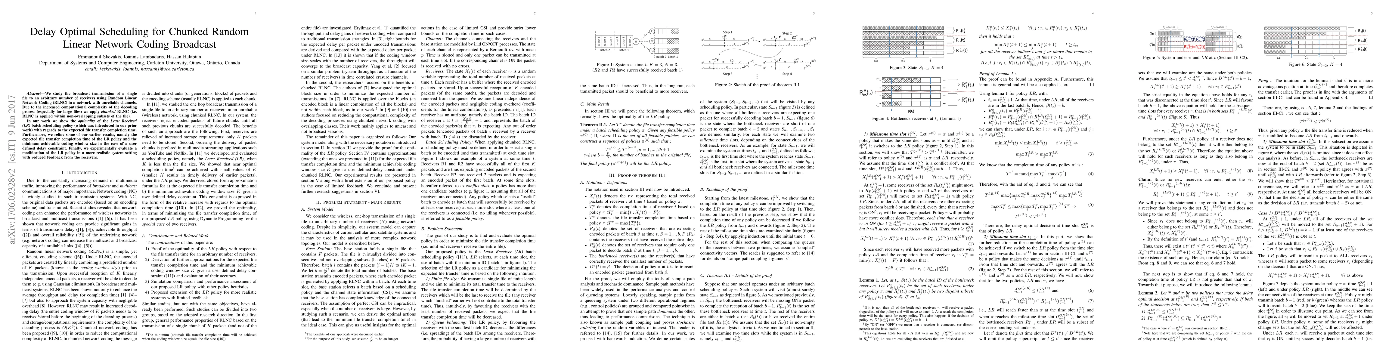 We study the broadcast transmission of a single file to an arbitrary number of receivers using Random Linear Network Coding (RLNC) in a network with unreliable channels. Due to the increased computational complexity of the decoding process (especially for large files) we apply chunked RLNC (i.e. RLNC is applied within non-overlapping subsets of the file). In our work we show the optimality of the Least Received (LR) batch scheduling policy (which was introduced in our prior work) with regards to the expected file transfer completion time. Furthermore, we refine some of our earlier results, namely the expected file transfer completion time of the LR policy and the minimum achievable coding window size in the case of a user defined delay constraint. Finally, we experimentally evaluate a modification of the LR policy in a more realistic system setting with reduced feedback from the receivers.