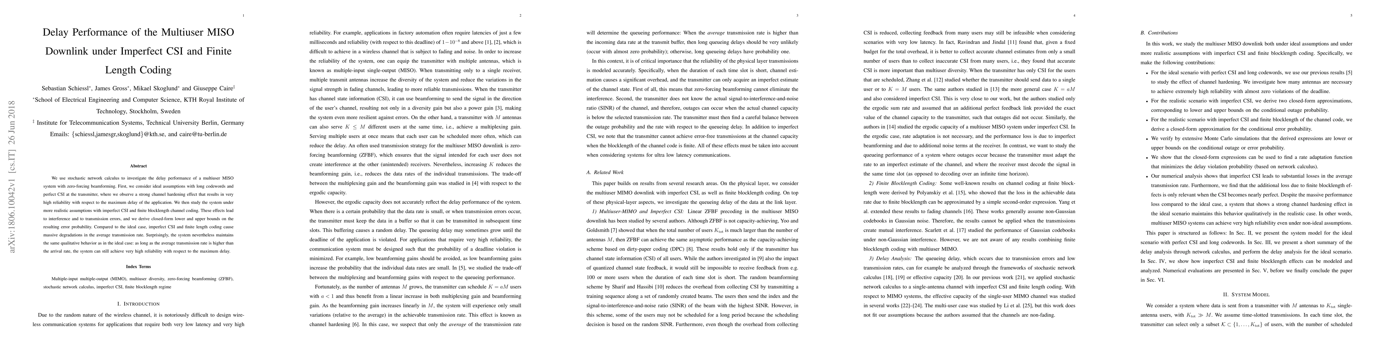 We use stochastic network calculus to investigate the delay performance of a multiuser MISO system with zero-forcing beamforming. First, we consider ideal assumptions with long codewords and perfect CSI at the transmitter, where we observe a strong channel hardening effect that results in very high reliability with respect to the maximum delay of the application. We then study the system under more realistic assumptions with imperfect CSI and finite blocklength channel coding. These effects lead to interference and to transmission errors, and we derive closed-form lower and upper bounds on the resulting error probability. Compared to the ideal case, imperfect CSI and finite length coding cause massive degradations in the average transmission rate. Surprisingly, the system nevertheless maintains the same qualitative behavior as in the ideal case: as long as the average transmission rate is higher than the arrival rate, the system can still achieve very high reliability with respect to the maximum delay.