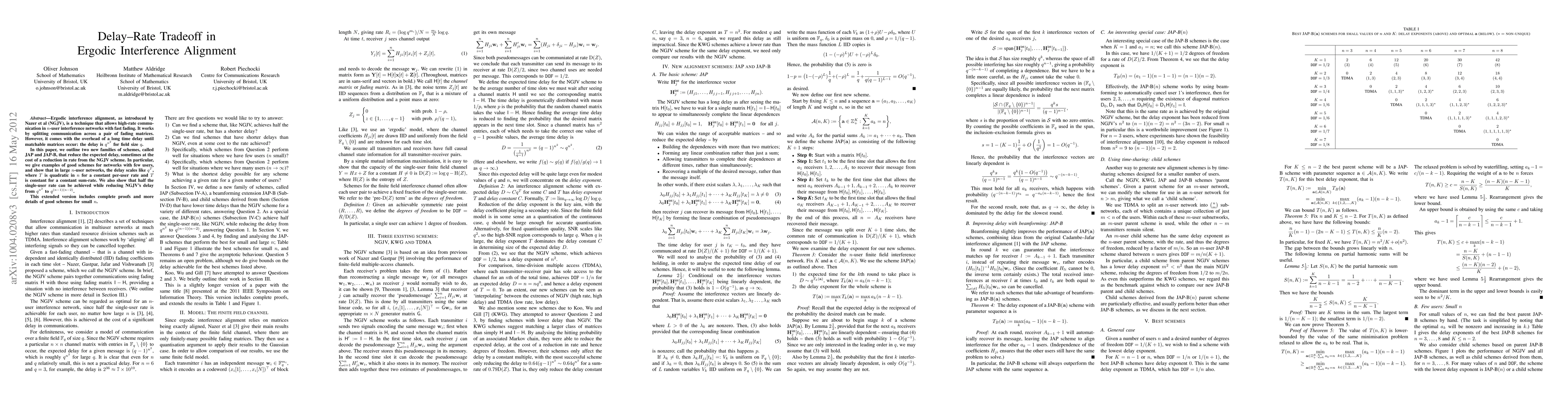 Ergodic interference alignment, as introduced by Nazer et al (NGJV), is a technique that allows high-rate communication in n-user interference networks with fast fading. It works by splitting communication across a pair of fading matrices. However, it comes with the overhead of a long time delay until matchable matrices occur: the delay is q^n^2 for field size q. In this paper, we outline two new families of schemes, called JAP and JAP-B, that reduce the expected delay, sometimes at the cost of a reduction in rate from the NGJV scheme. In particular, we give examples of good schemes for networks with few users, and show that in large n-user networks, the delay scales like q^T, where T is quadratic in n for a constant per-user rate and T is constant for a constant sum-rate. We also show that half the single-user rate can be achieved while reducing NGJV's delay from q^n^2 to q^(n-1)(n-2). This extended version includes complete proofs and more details of good schemes for small n.