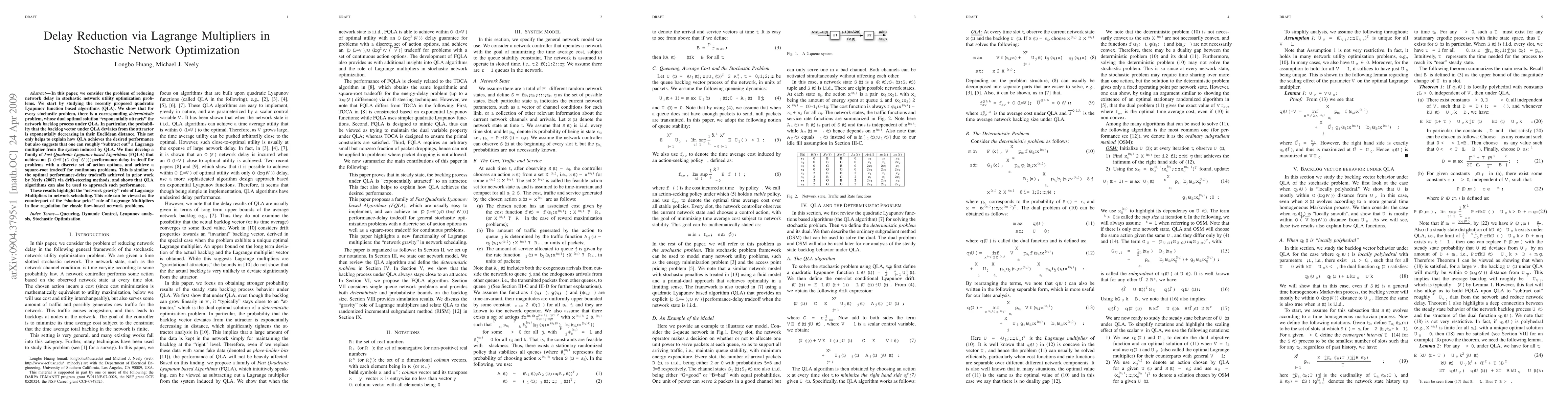 This paper proposes Fast Quadratic Lyapunov based Algorithms (FQLA) to reduce network delay in stochastic network optimization, leveraging Lagrange multipliers to achieve optimal performance-delay tradeoffs similar to those found in prior drift-steering methods. The study reveals the "network gravity" role of Lagrange multipliers in scheduling, analogous to their "shadow price" role in classic flow-based network problems.