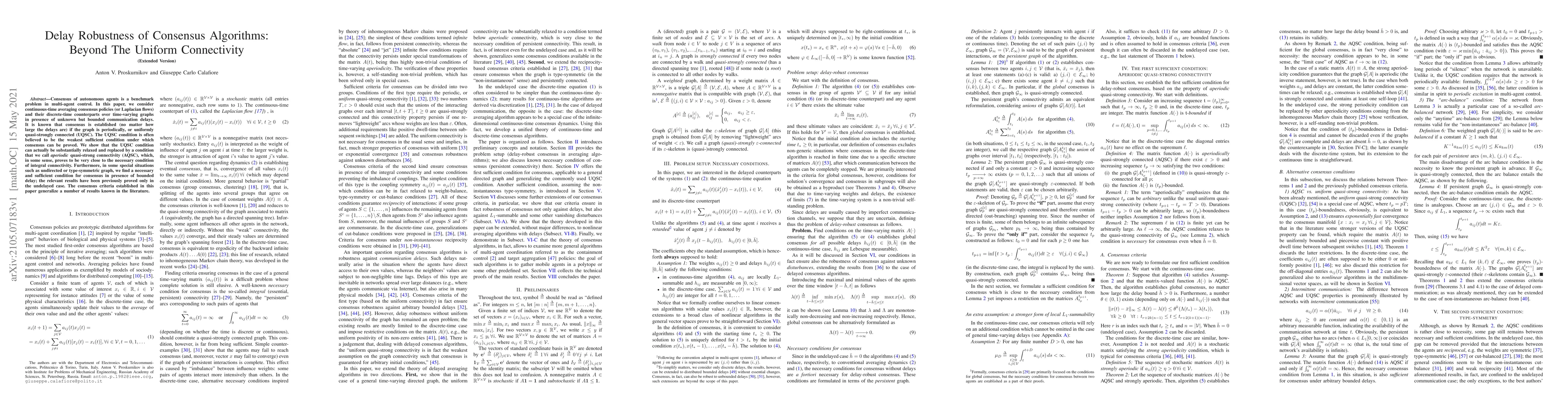 Researchers found that consensus algorithms can function even when the graph is only aperiodically quasi-strongly connected, rather than uniformly quasi-strongly connected, in the presence of bounded communication delays.
