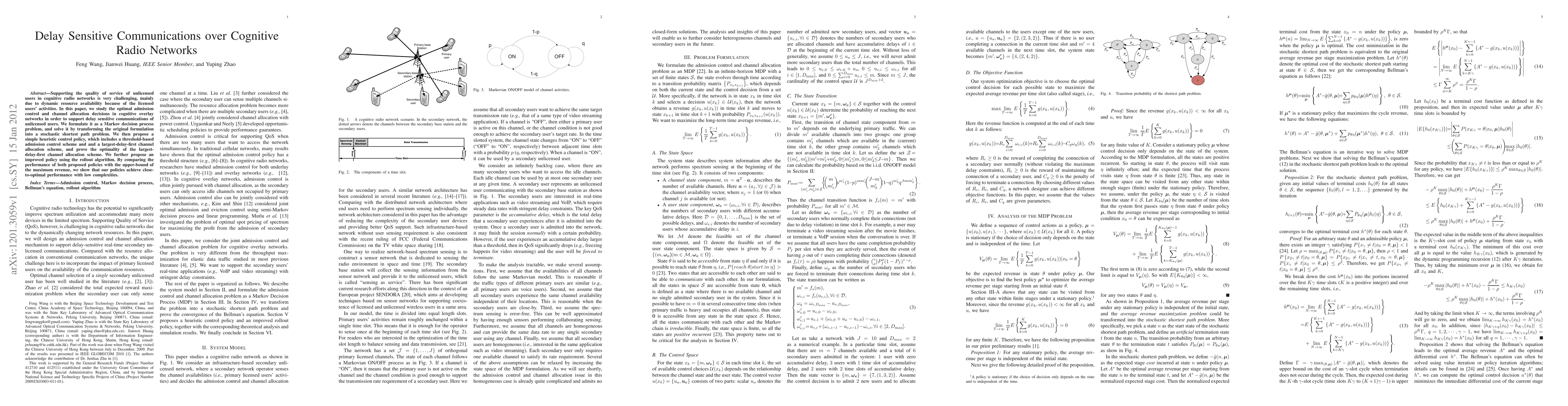 This paper investigates optimal admission control and channel allocation in cognitive radio networks to support delay-sensitive communications. It formulates the problem as a Markov decision process and solves it via a stochastic shortest path problem, proposing heuristic and improved policies that achieve near-optimal performance with low complexity.