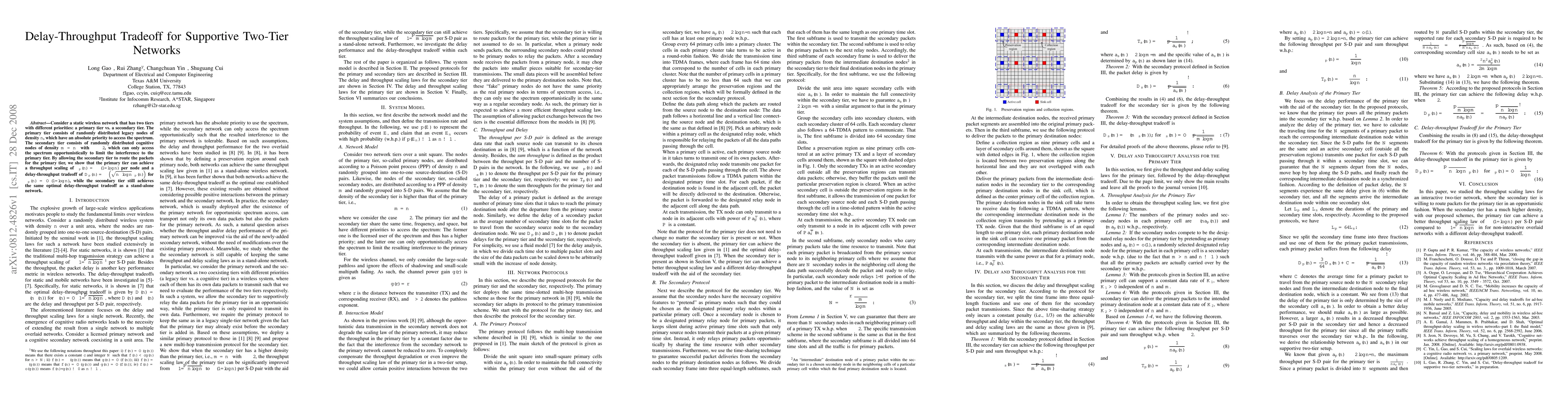 This paper investigates a two-tier wireless network with primary and secondary nodes, demonstrating that the primary tier can achieve a throughput of $\Theta(1/\log n)$ per node, while maintaining a delay-throughput tradeoff of $D_p(n)=\Theta(\sqrt{n^\beta\log n}\lambda_p(n))$, allowing the secondary tier to opportunistically access the spectrum without compromising the primary tier's performance.