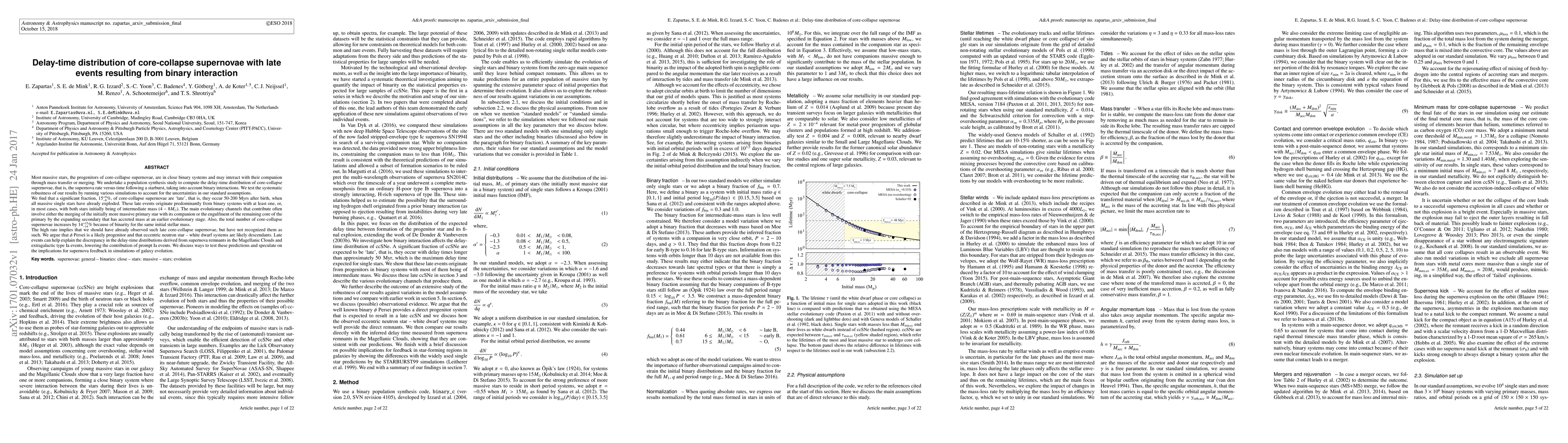 This study investigates the delay-time distribution of core-collapse supernovae from binary interactions, finding that 15% of such events occur 50-200 Myrs after the birth of massive stars, primarily due to binary systems involving intermediate-mass stars. The research suggests that late supernovae can help reconcile discrepancies in supernova remnant distributions and have implications for galaxy evolution simulations.