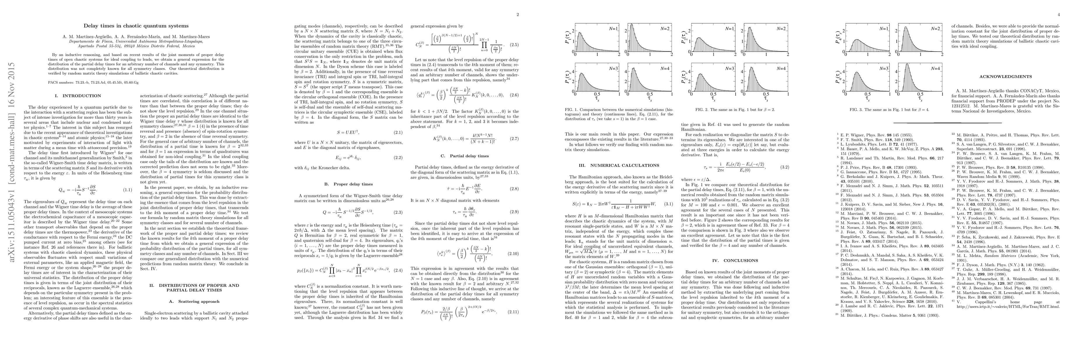 This paper derives a general expression for the distribution of partial delay times in chaotic quantum systems, previously unknown for all symmetry classes, and verifies the theoretical results using random matrix theory simulations of ballistic chaotic cavities.