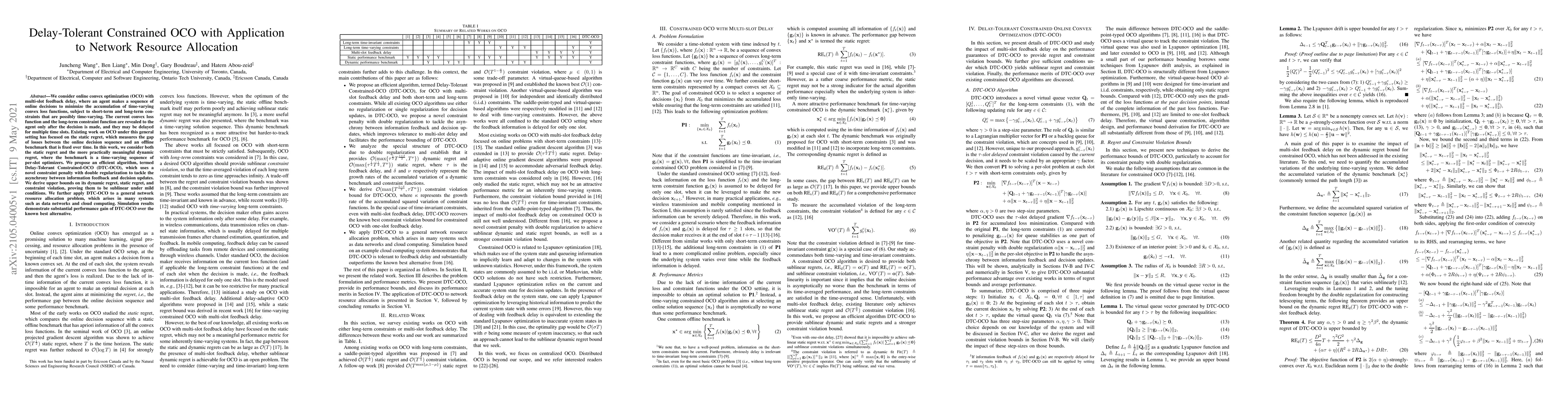 This research proposes a novel algorithm called Delay-Tolerant Constrained-OCO that optimizes online decisions under multi-slot feedback delay to minimize static and dynamic regret in network resource allocation.