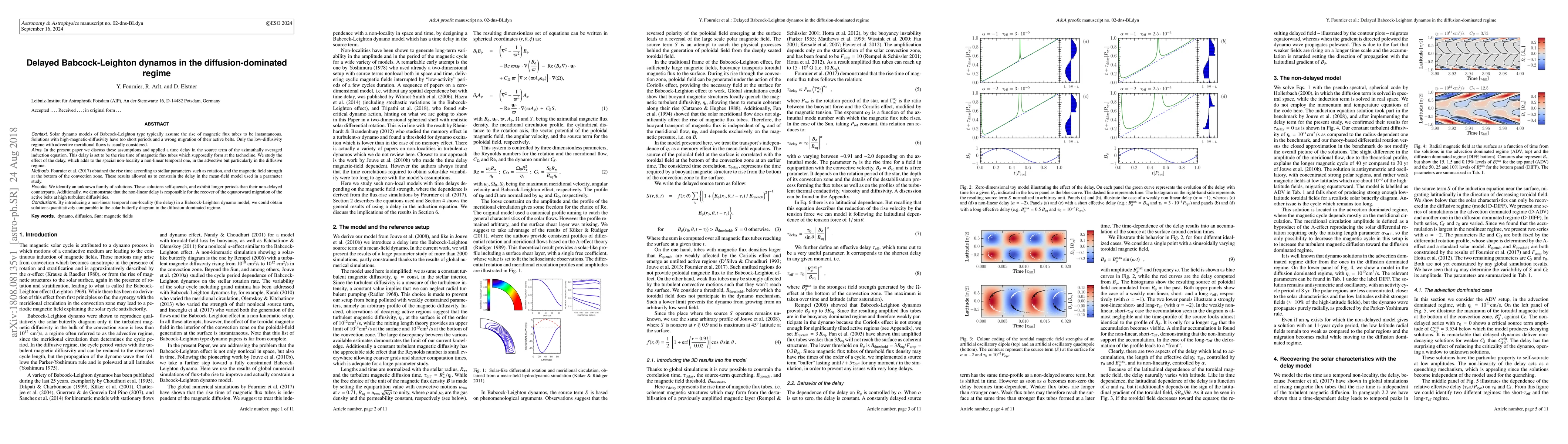 Context. Solar dynamo models of Babcock-Leighton type typically assume the rise of magnetic flux tubes to be instantaneous. Solutions with high-magnetic-diffusivity have too short periods and a wrong migration of their active belts. Only the low-diffusivity regime with advective meridional flows is usually considered. Aims. In the present paper we discuss these assumptions and applied a time delay in the source term of the azimuthally averaged induction equation. This delay is set to be the rise time of magnetic flux tubes which supposedly form at the tachocline. We study the effect of the delay, which adds to the spacial non-locality a non-linear temporal one, in the advective but particularly in the diffusive regime. Methods. Fournier et al. (2017) obtained the rise time according to stellar parameters such as rotation, and the magnetic field strength at the bottom of the convection zone. These results allowed us to constrain the delay in the mean-field model used in a parameter study. Results. We identify an unknown family of solutions. These solutions self-quench, and exhibit longer periods than their non-delayed counterparts. Additionally, we demonstrate that the non-linear delay is responsible for the recover of the equatorward migration of the active belts at high turbulent diffusivities. Conclusions. By introducing a non-linear temporal non-locality (the delay) in a Babcock-Leighton dynamo model, we could obtain solutions quantitatively comparable to the solar butterfly diagram in the diffusion-dominated regime.