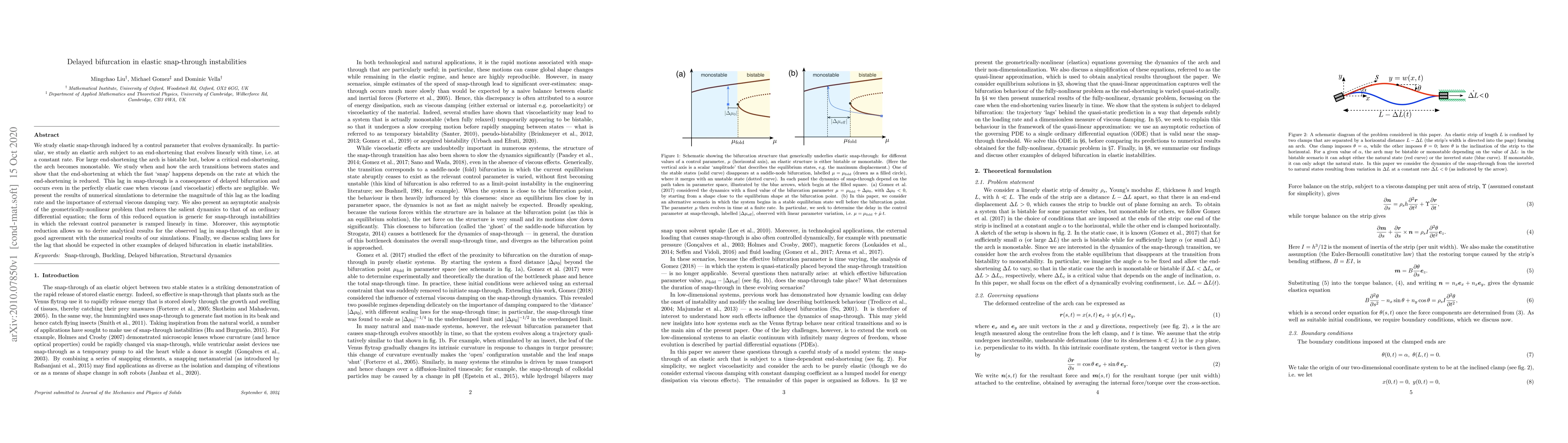 The paper presents an asymptotic reduction of the dynamic elastic equations, leading to a reduced model that captures the essential features of snap-through instabilities under time-dependent loading, including the delay phenomenon.