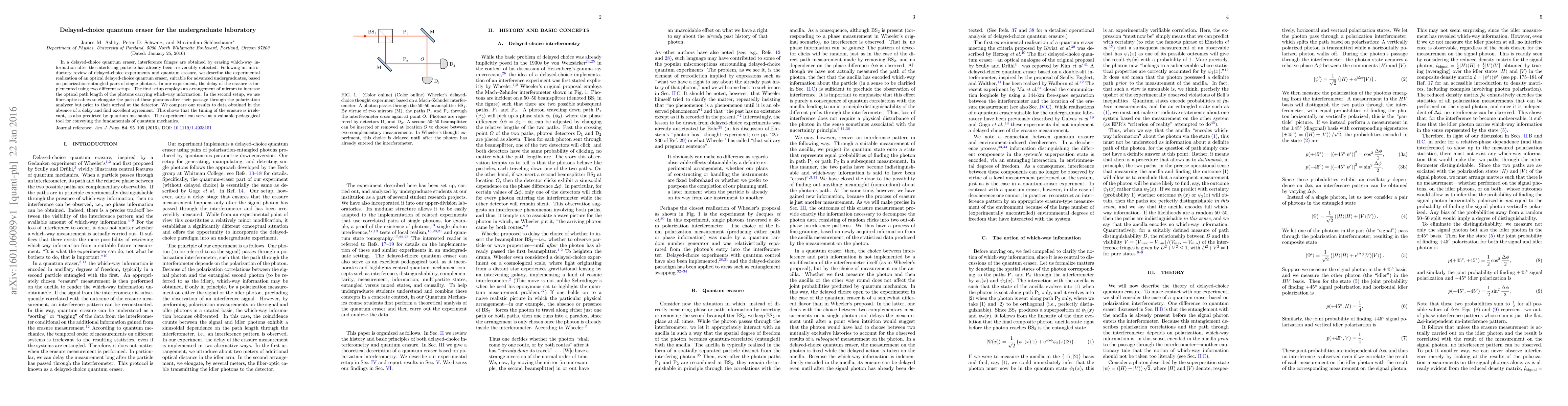 This paper presents an undergraduate laboratory experiment on a delayed-choice quantum eraser using polarization-entangled photons, demonstrating that interference fringes can be obtained by erasing which-way information after detection. The experiment shows that the timing of the erasure does not affect the results, supporting quantum mechanics predictions.
