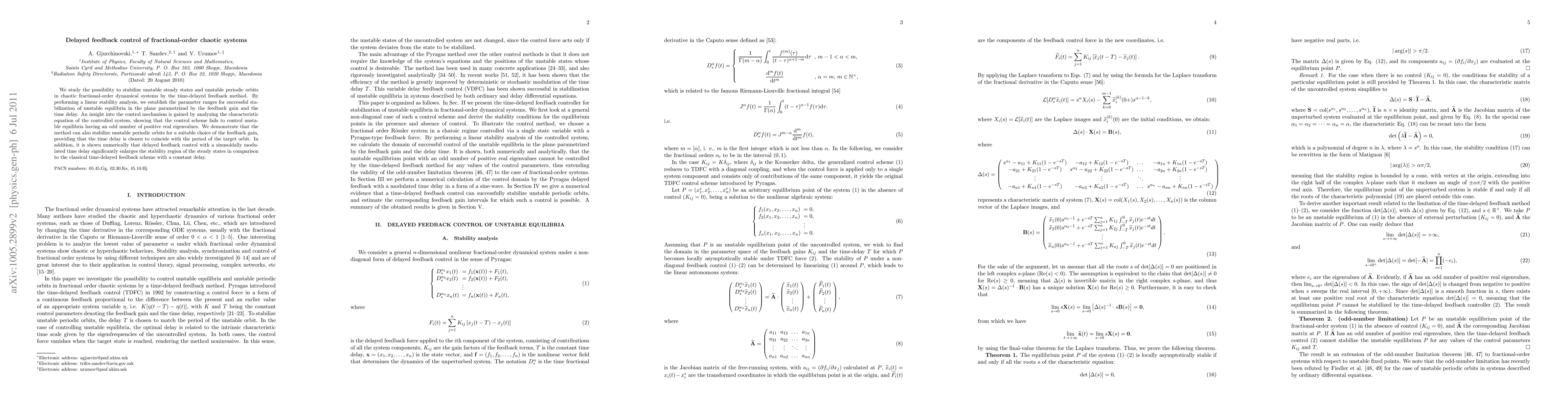 This paper investigates the stability of chaotic fractional-order systems using time-delayed feedback control, identifying parameter ranges for stabilizing unstable equilibria and periodic orbits. It reveals that sinusoidally modulated time delays enhance stability regions compared to constant delays.