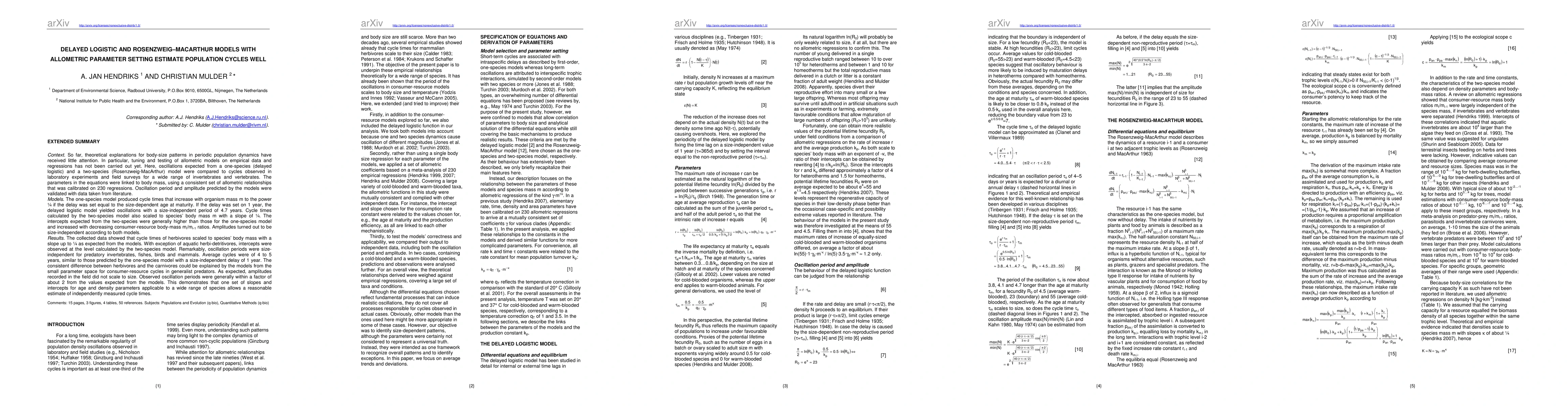 Context. So far, theoretical explanations for body-size patterns in periodic population dynamics have received little attention. In particular, tuning and testing of allometric models on empirical data and regressions has not been carried out yet. Here, oscillations expected from a one-species (delayed logistic) and a two-species (Rosenzweig-MacArthur) model were compared to cycles observed in laboratory experiments and field surveys for a wide range of invertebrates and vertebrates. The parameters in the equations were linked to body mass, using a consistent set of allometric relationships that was calibrated on 230 regressions. Oscillation period and amplitude predicted by the models were validated with data taken from literature. Results. The collected data showed that cycle times of herbivores scaled to species body mass with a slope up to 1/4 as expected from the models. With exception of aquatic herbi-detritivores, intercepts were observed at the level calculated by the two-species model. Remarkably, oscillation periods were size-independent for predatory invertebrates, fishes, birds and mammals. Average cycles were of 4 to 5 years, similar to those predicted by the one-species model with a size-independent delay of 1 year. The consistent difference between herbivores and the carnivores could be explained by the models from the small parameter space for consumer-resource cycles in generalist predators. As expected, amplitudes recorded in the field did not scale to size. Observed oscillation periods were generally within a factor of about 2 from the values expected from the models. This demonstrates that a set of slopes and intercepts for age and density parameters applicable to a wide range of species allows a reasonable estimate of independently measured cycle times.