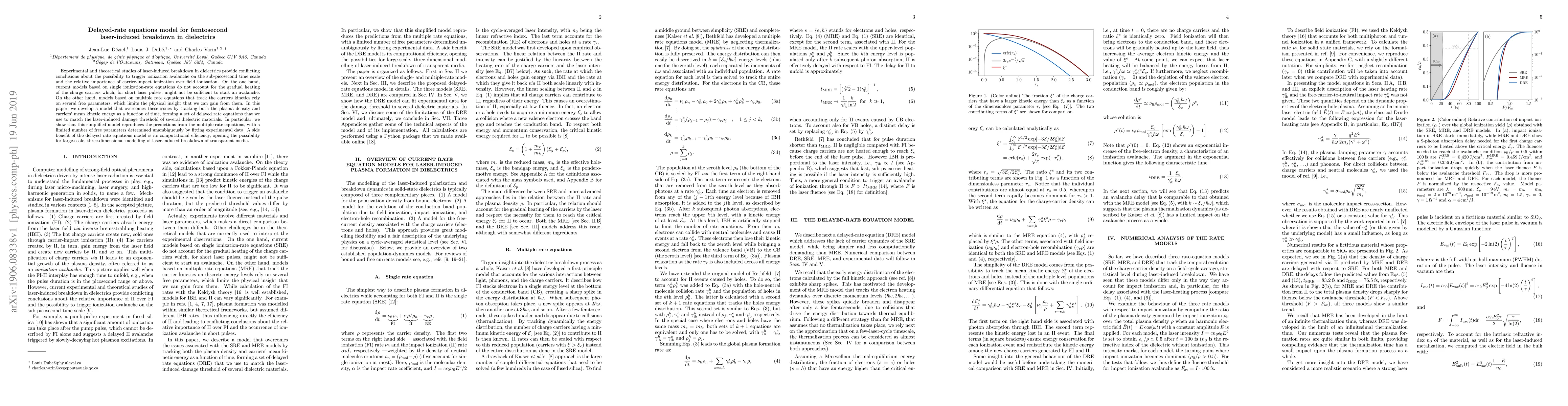 This paper presents a delayed-rate equations model to better understand femtosecond laser-induced breakdown in dielectrics, addressing the limitations of existing single and multiple rate models. The new model effectively captures plasma density and carrier kinetic energy, providing accurate predictions with fewer free parameters.