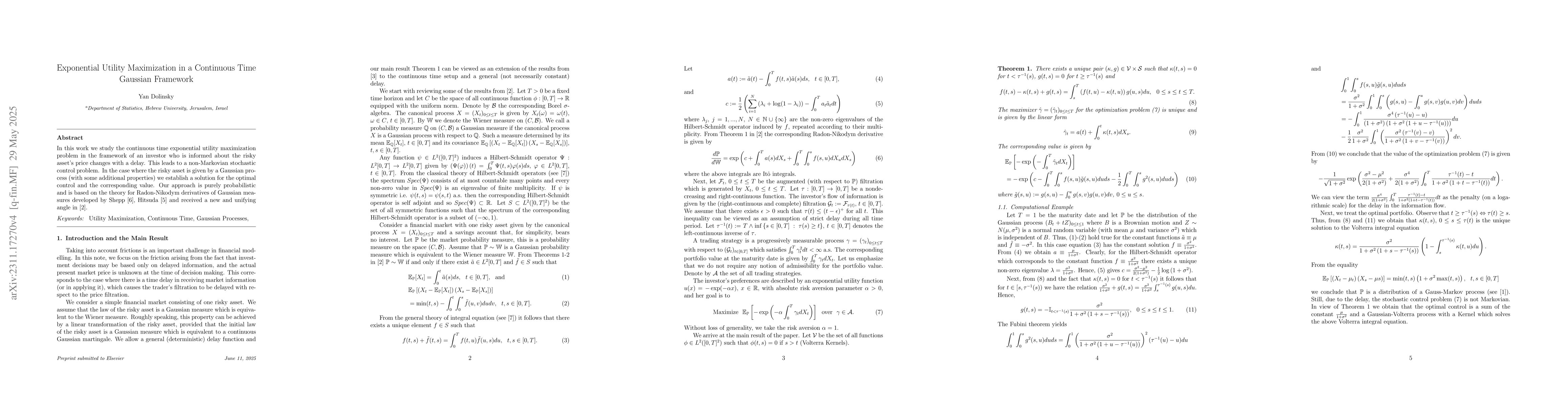 Summary: This paper investigates the optimization of exponential utility in continuous time within the semi-static hedging framework of the Bachelier model, focusing on delayed strategies. It aims to enhance hedging efficiency through strategic timing adjustments.
