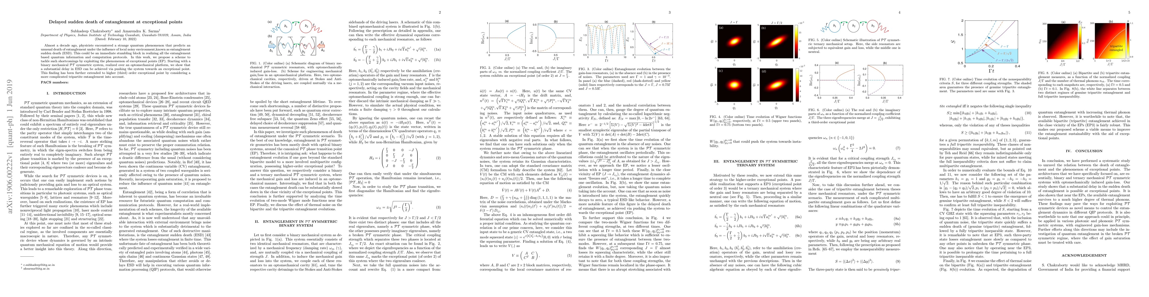 This paper proposes a method to significantly delay entanglement sudden death (ESD) by leveraging exceptional points (EP) in a binary mechanical $\mathcal{PT}$ symmetric optomechanical system. The authors demonstrate that pushing the system towards an EP can substantially prolong ESD, extending this effect to higher-order EPs for more complex tripartite entanglement scenarios.