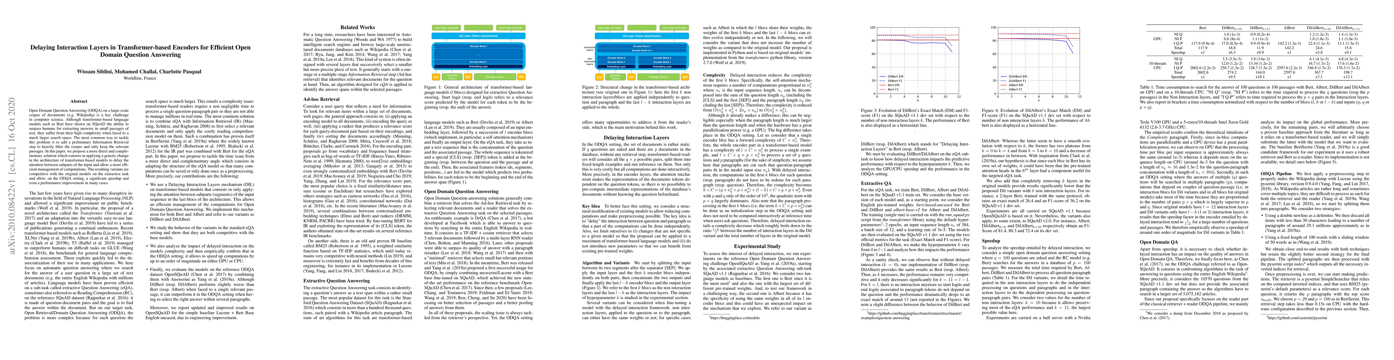 Researchers propose a new approach to improve efficiency in Open Domain Question Answering using transformer-based models, by delaying interaction layers and achieving competitive results with original models.