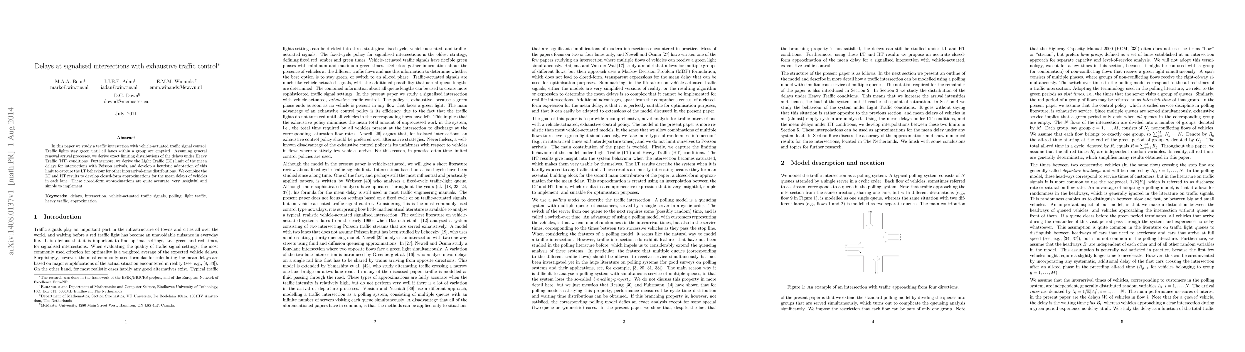 This paper investigates delays at signalised intersections under vehicle-actuated traffic control, deriving exact limiting distributions for Heavy Traffic conditions and approximations for Light Traffic scenarios. The study combines these results to provide simple, accurate, and insightful closed-form approximations for mean delays in each lane.