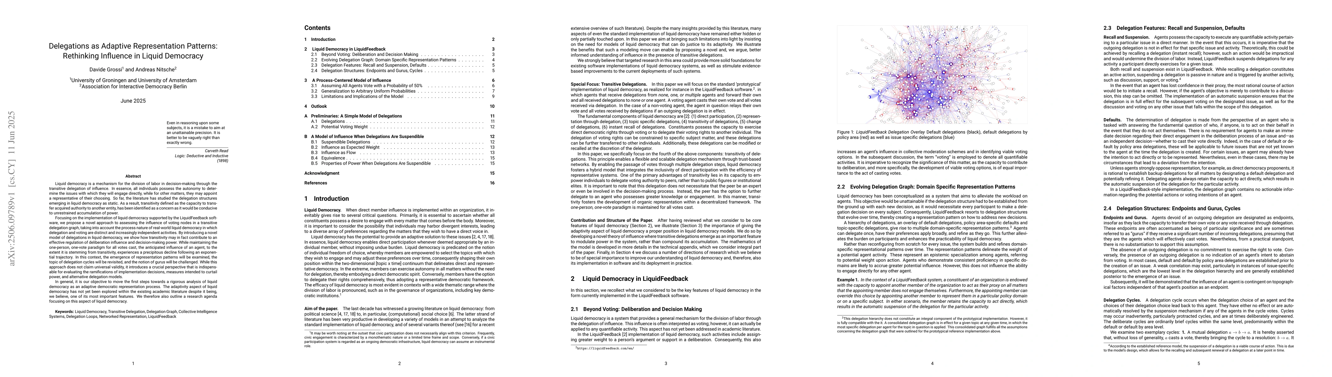 Liquid democracy is a mechanism for the division of labor in decision-making through the transitive delegation of influence. In essence, all individuals possess the autonomy to determine the issues with which they will engage directly, while for other matters, they may appoint a representative of their choosing. So far, the literature has studied the delegation structures emerging in liquid democracy as static. As a result, transitivity defined as the capacity to transfer acquired authority to another entity, has been identified as a concern as it would be conducive to unrestrained accumulation of power. Focusing on the implementation of liquid democracy supported by the LiquidFeedback software, we propose a novel approach to assessing the influence of voting nodes in a transitive delegation graph, taking into account the process nature of real-world liquid democracy in which delegation and voting are distinct and increasingly independent activities. By introducing a novel model of delegations in liquid democracy, we show how transitivity may in fact contribute to an effective regulation of deliberation influence and decision-making power. While maintaining the one-person, one-vote paradigm for all votes cast, the anticipated influence of an agent, to the extent it is stemming from transitivity, experiences a precipitous decline following an exponential trajectory. In general, it is our objective to move the first steps towards a rigorous analysis of liquid democracy as an adaptive democratic representation process. The adaptivity aspect of liquid democracy has not yet been explored within the existing academic literature despite it being, we believe, one of its most important features. We therefore also outline a research agenda focusing on this aspect of liquid democracy.