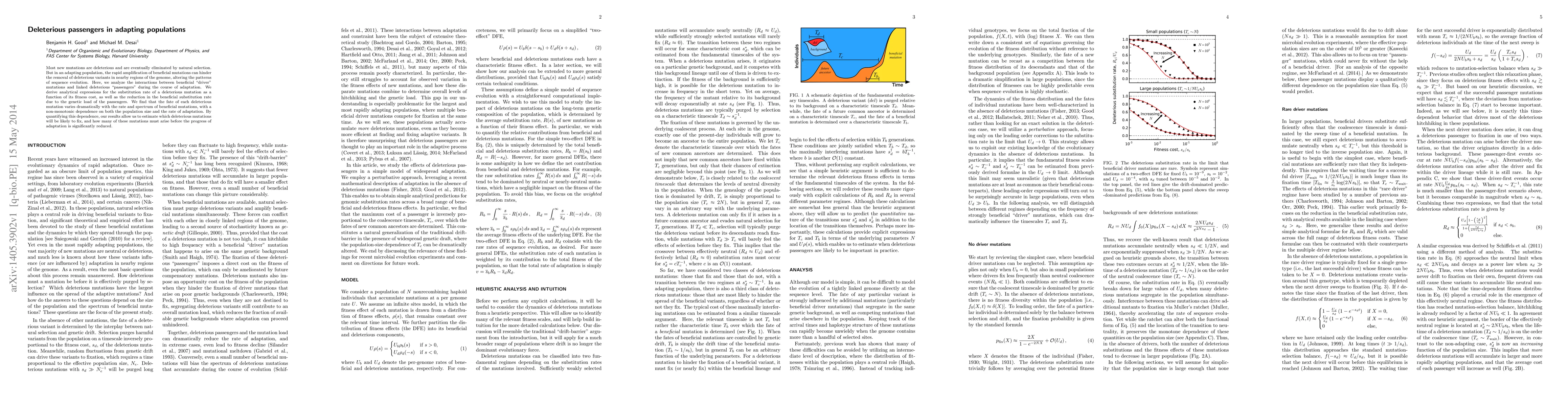 Most new mutations are deleterious and are eventually eliminated by natural selection. But in an adapting population, the rapid amplification of beneficial mutations can hinder the removal of deleterious variants in nearby regions of the genome, altering the patterns of sequence evolution. Here, we analyze the interactions between beneficial "driver" mutations and linked deleterious "passengers" during the course of adaptation. We derive analytical expressions for the substitution rate of a deleterious mutation as a function of its fitness cost, as well as the reduction in the beneficial substitution rate due to the genetic load of the passengers. We find that the fate of each deleterious mutation varies dramatically with the rate and spectrum of beneficial mutations, with a non-monotonic dependence on both the population size and the rate of adaptation. By quantifying this dependence, our results allow us to estimate which deleterious mutations will be likely to fix, and how many of these mutations must arise before the progress of adaptation is significantly reduced.