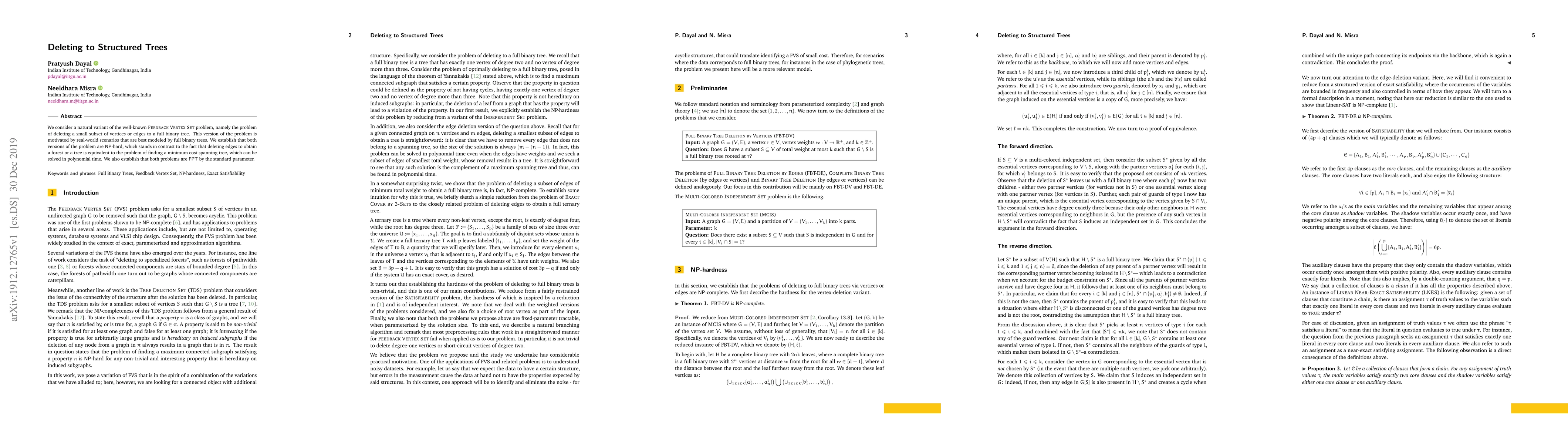 We consider a natural variant of the well-known Feedback Vertex Set problem, namely the problem of deleting a small subset of vertices or edges to a full binary tree. This version of the problem is motivated by real-world scenarios that are best modeled by full binary trees. We establish that both versions of the problem are NP-hard, which stands in contrast to the fact that deleting edges to obtain a forest or a tree is equivalent to the problem of finding a minimum cost spanning tree, which can be solved in polynomial time. We also establish that both problems are FPT by the standard parameter.