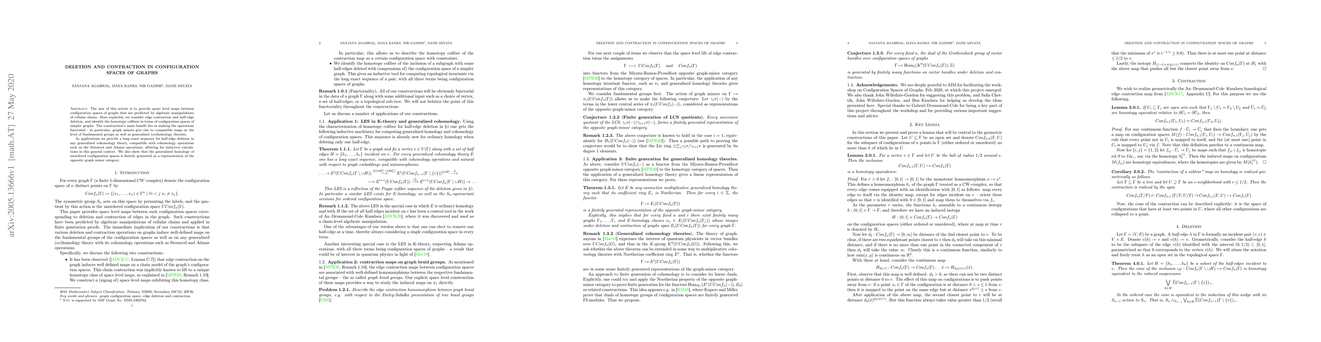This paper constructs functorial maps between configuration spaces of graphs through edge contraction and half-edge deletion, showing their homotopy cofibers. It provides applications including a long exact sequence for half-edge deletion in generalized cohomology theories and proves that the generalized homology of unordered configuration spaces is finitely generated.