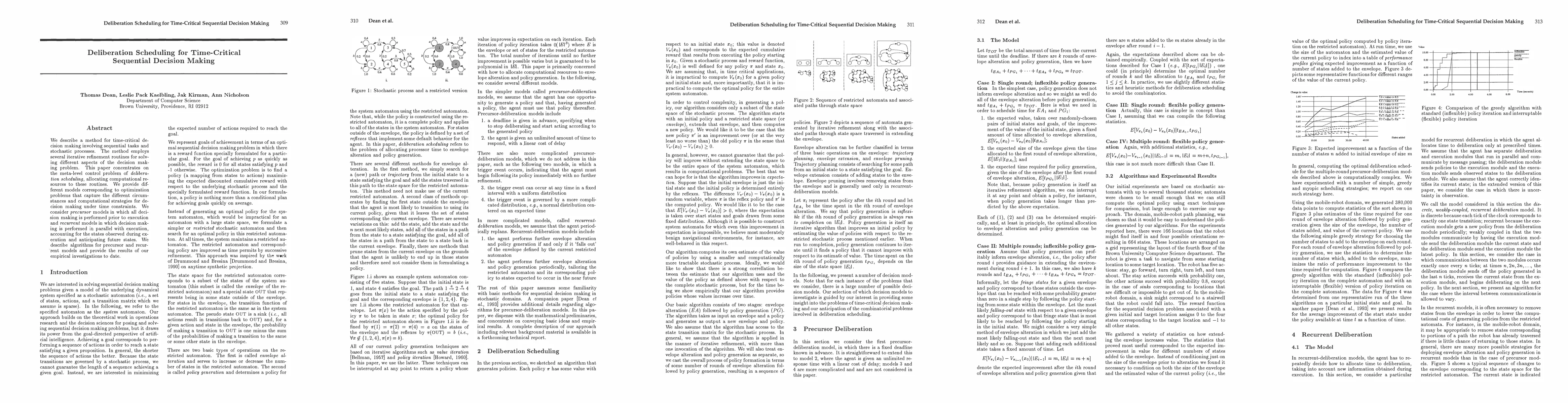 This paper presents a method for time-critical decision making in sequential tasks using iterative refinement routines, focusing on the meta-level control problem of deliberation scheduling. It explores both precursor and recurrent models, providing algorithms and empirical results for both.