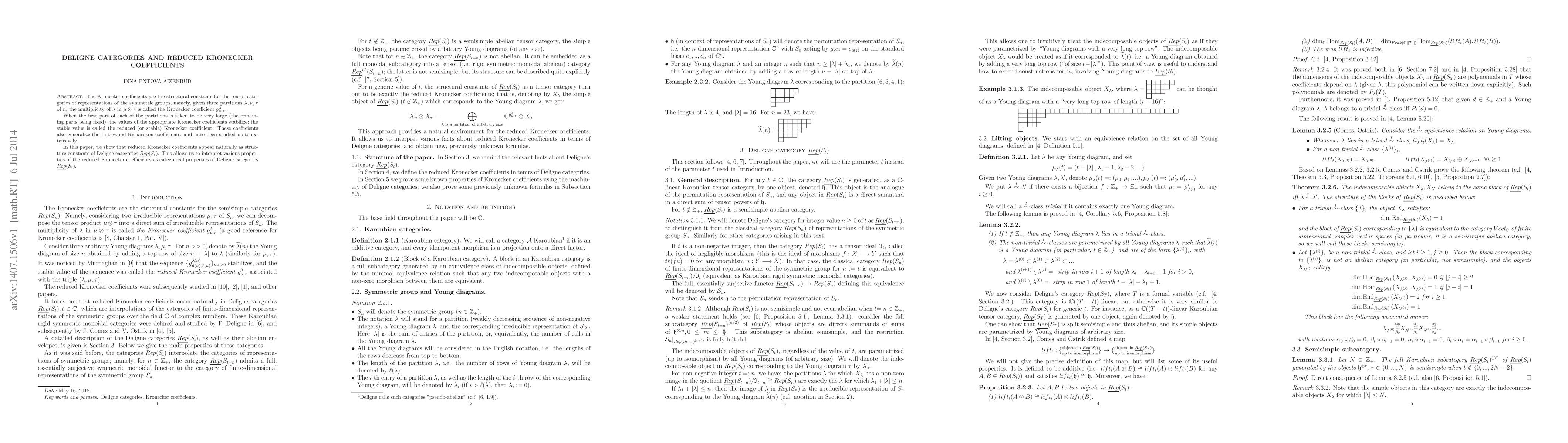 This paper demonstrates that reduced Kronecker coefficients emerge as the structure constants for Deligne categories $\underline{Rep}(S_t)$, interpreting their properties through the lens of these categorical structures. These coefficients stabilize when the first part of each partition is large and generalize the Littlewood-Richardson coefficients.