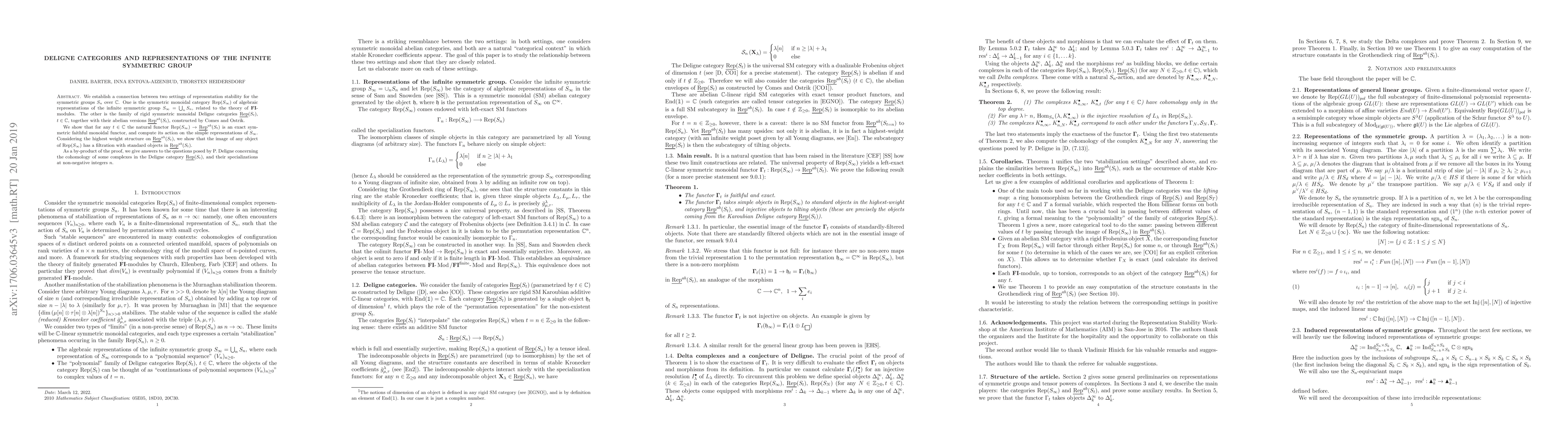 This paper establishes a connection between Deligne categories and representations of the infinite symmetric group, showing that a natural functor from one category to another is an exact, symmetric, faithful monoidal functor with significant implications for representation stability and cohomology.