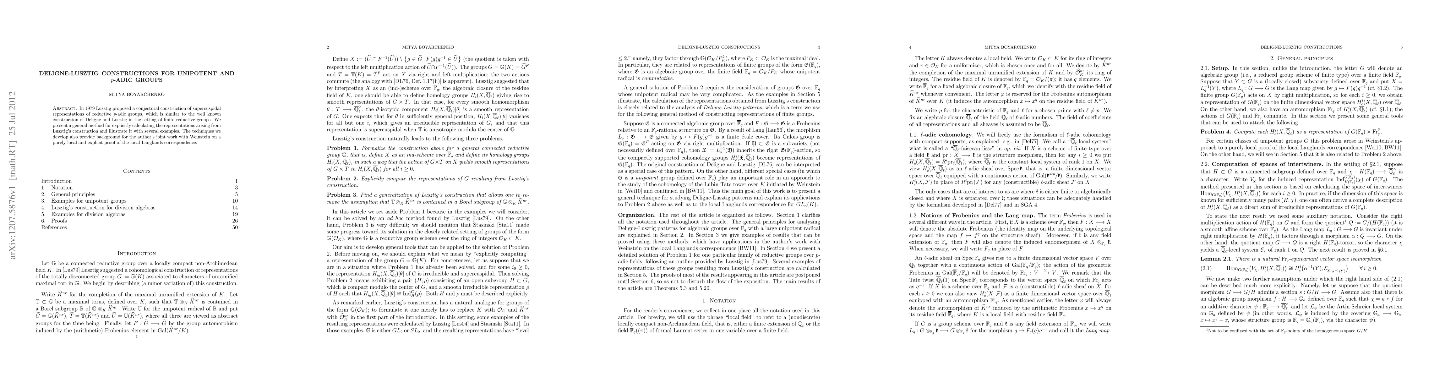 In 1979 Lusztig proposed a conjectural construction of supercuspidal representations of reductive p-adic groups, which is similar to the well known construction of Deligne and Lusztig in the setting of finite reductive groups. We present a general method for explicitly calculating the representations arising from Lusztig's construction and illustrate it with several examples. The techniques we develop also provide background for the author's joint work with Weinstein on a purely local and explicit proof of the local Langlands correspondence.