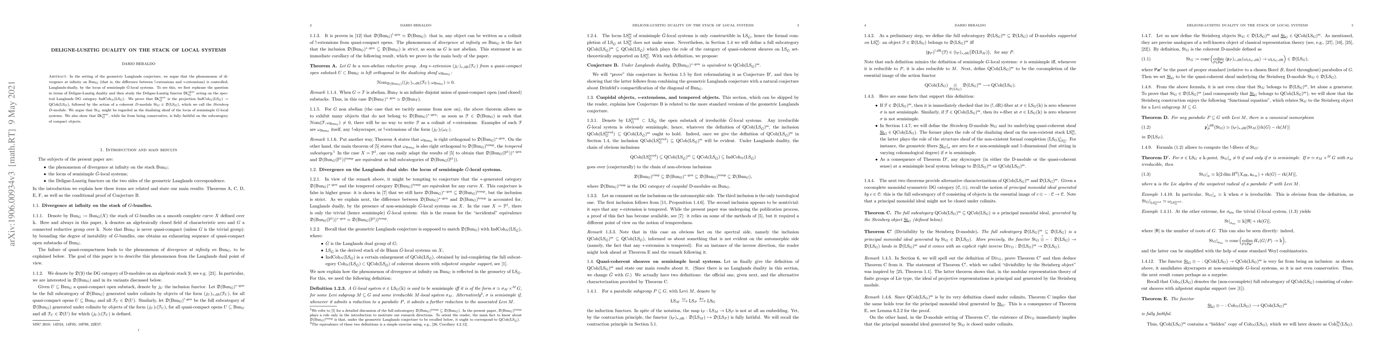 This paper explores Deligne-Lusztig duality in the context of the geometric Langlands conjecture, demonstrating that divergence at infinity on the stack of $G$-bundles is controlled by the locus of semisimple $\check{G}$-local systems. The authors prove that the Deligne-Lusztig functor acts as a projection followed by the Steinberg D-module, which they propose as the dualizing sheaf for semisimple $G$-local systems.